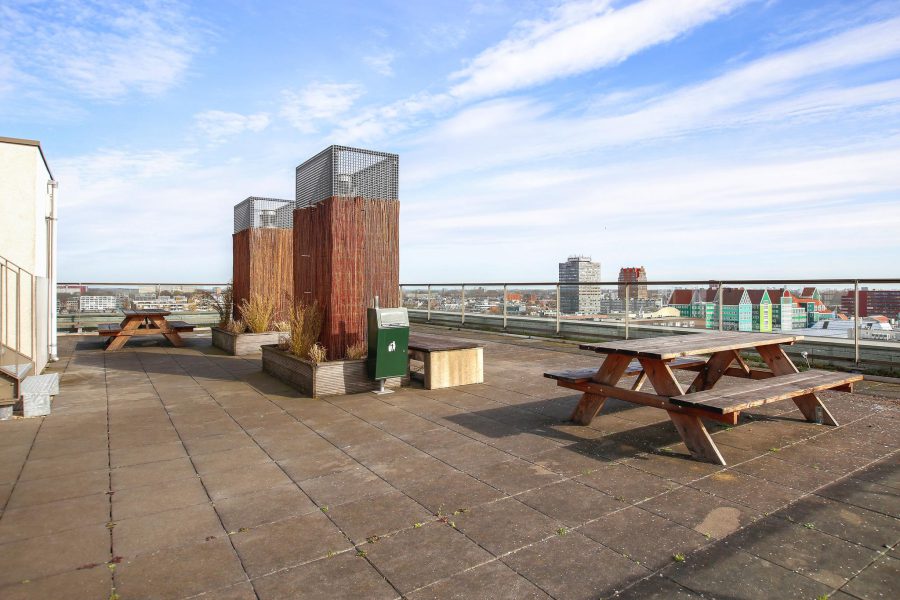 Op de twaalfde verdieping is het gemeenschappelijke dakterras gelegen. Op het ruime dakterras kun je genieten van een geweldig uitzicht over de Zaanstreek.