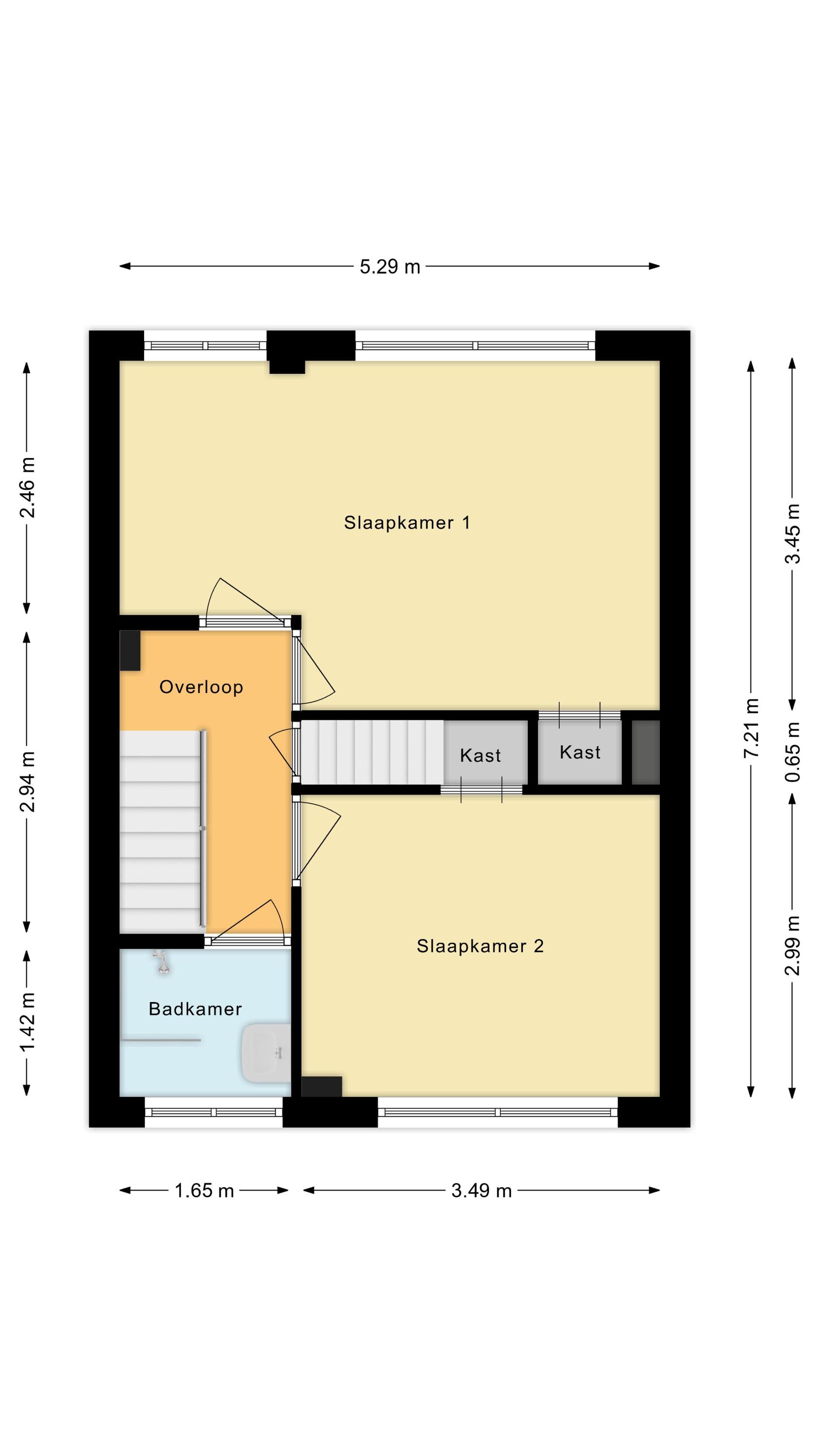 Deze verdieping telt drie kamers, waarvan nu twee slaapkamers en één badkamer. Van de twee slaapkamers ligt er één aan de voorzijde en één aan de achterzijde. De derde kamer wordt nu gebruikt als kleedkamer. De kamers zijn ruim van formaat en voorzien van een mooie vloer en strakke wanden. Daarnaast genieten de slaapkamers van veel natuurlijk licht.