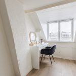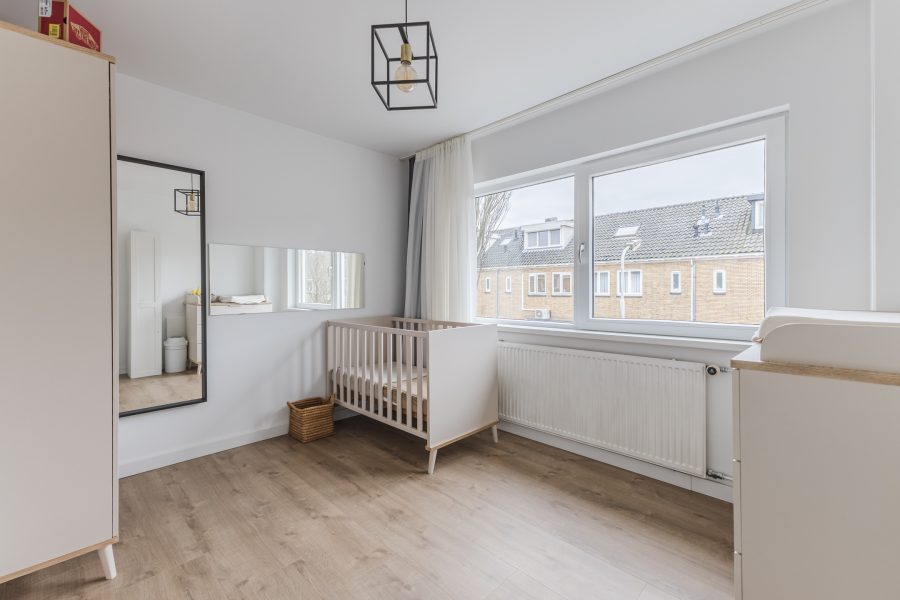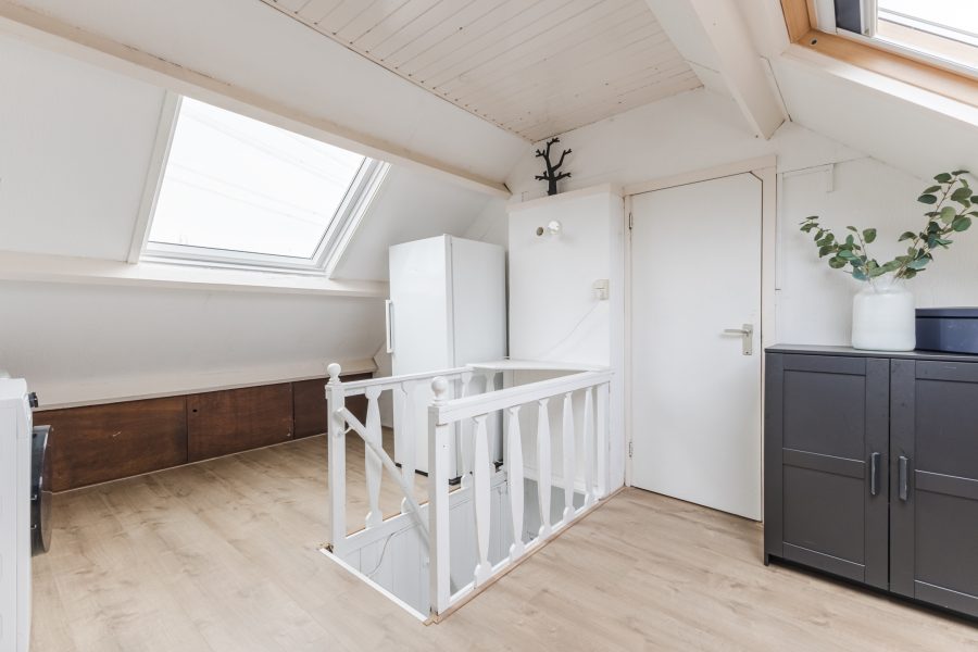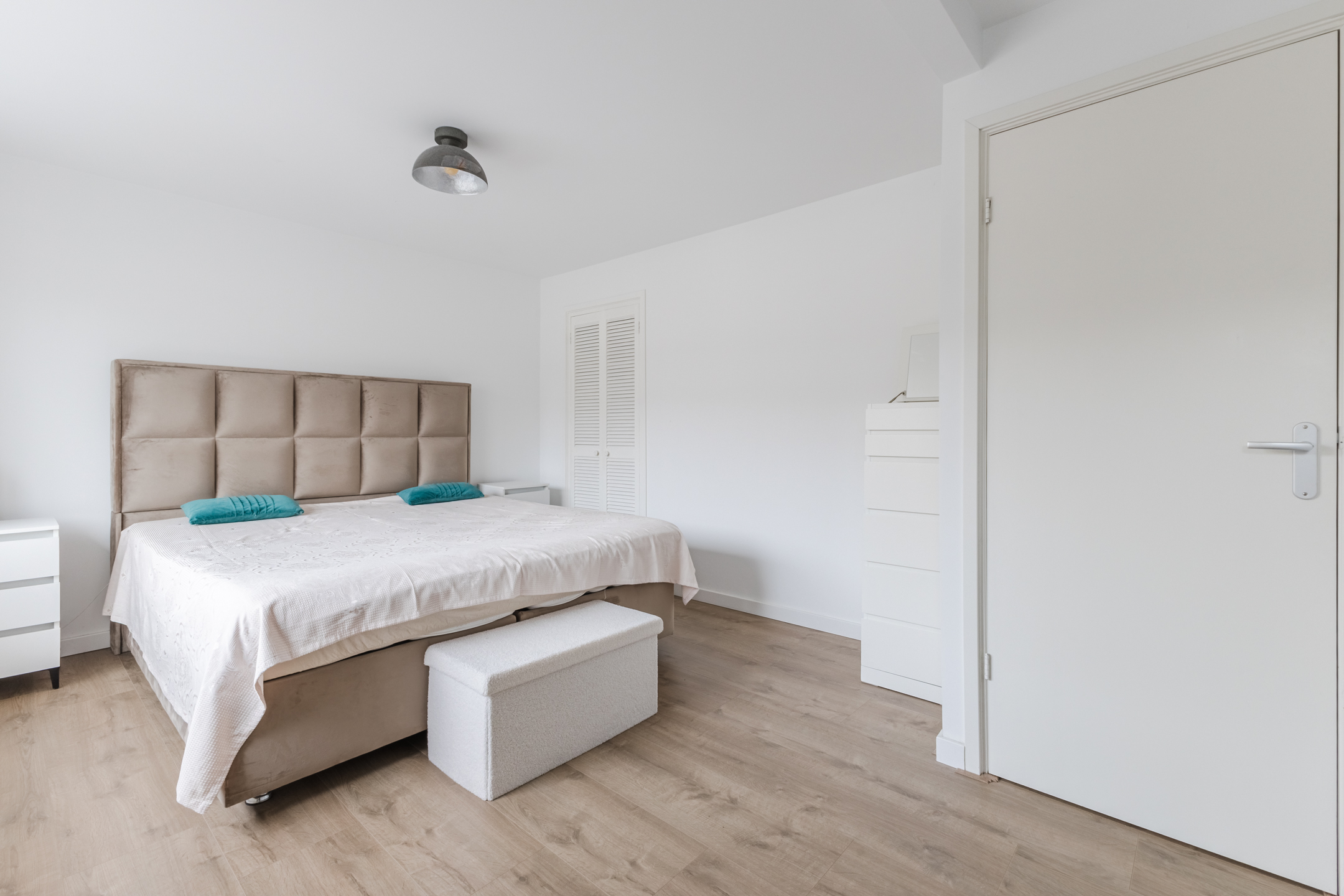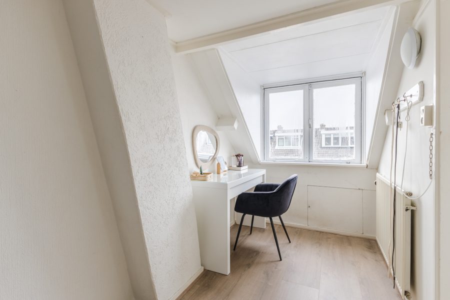 De slaapkamer is netjes afgewerkt en geniet van veel licht dankzij de dakkapel aan de achterzijde. In de kamer is bergruimte gecreëerd.