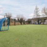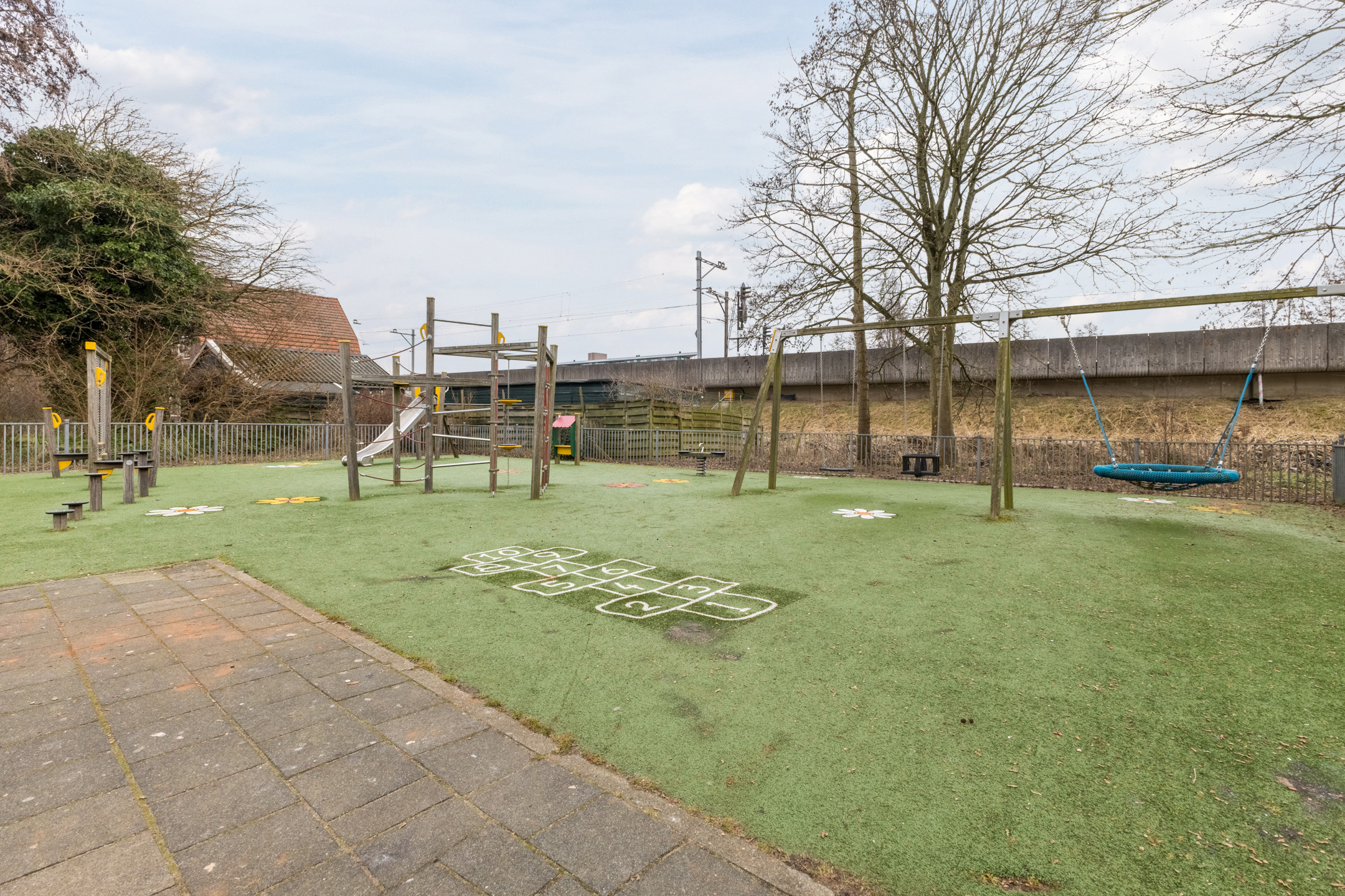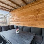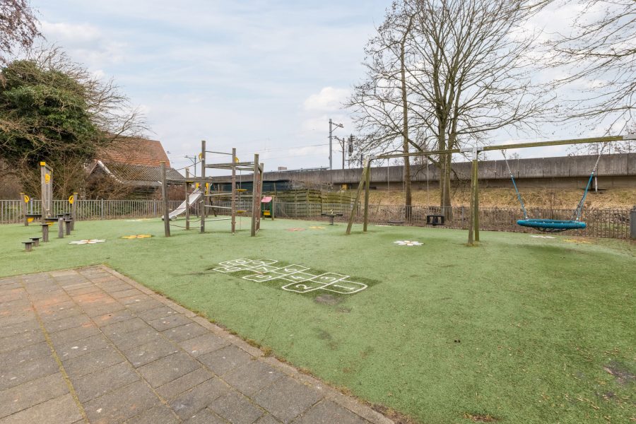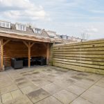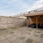 The house has a large, tiled backyard (24 m²). There is enough space for several cozy seating areas and/or playground equipment for children. The garden faces northwest and offers afternoon and evening sun. Thanks to the wooden fences on both sides, you will enjoy plenty of privacy. At the back of the garden is a large wooden canopy, ideal for covered lounging. The garden is accessible via a back entrance.