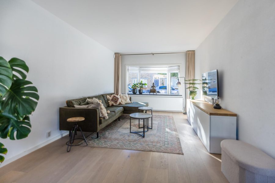 Through the front garden we reach the front door with sidelights. Entrance with wardrobe and meter closet, wide fixed closet. Floating toilet with hand basin and access to the spacious, bright living room with open kitchen. The living room has a high ceiling, a bay window at the front and French doors to the garden at the back. At the rear is the L-shaped kitchen. The kitchen has white fronts and is equipped with built-in appliances, including an induction cooker (2023). At the height of the kitchen is a beautiful fixed closet. There is enough space in the living room for a generous seating area and a spacious dining table. There are wooden floorboards on the floor with underfloor heating underneath and the walls and ceilings are finished neat and neutral.