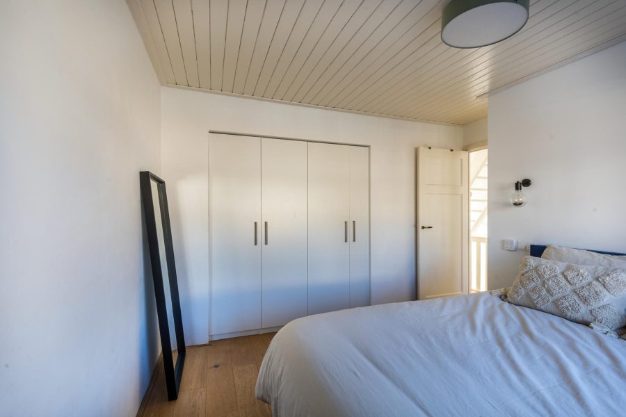 You reach this floor via the open staircase. This floor is also nicely finished and has a dormer window at the front and back. Here you will find two more bedrooms and enclosed storage space.