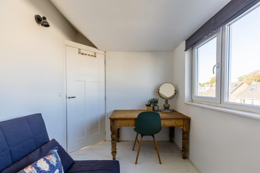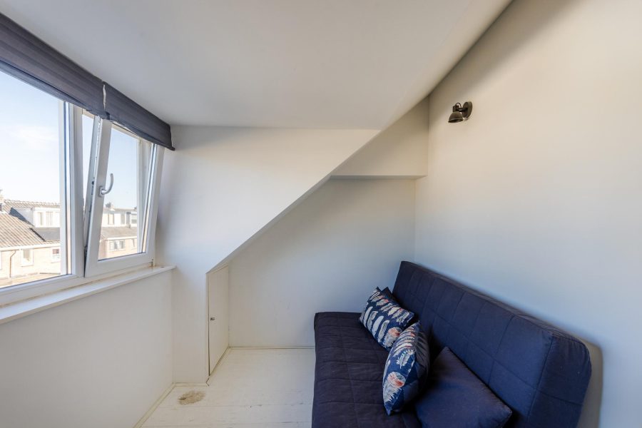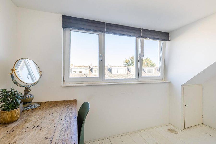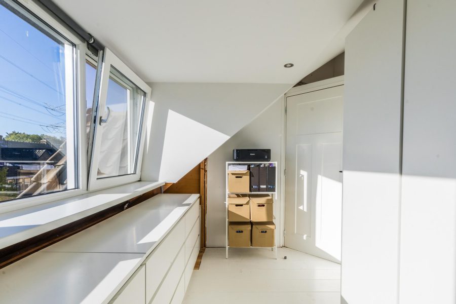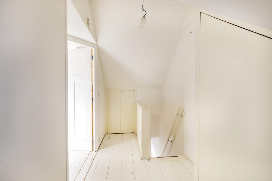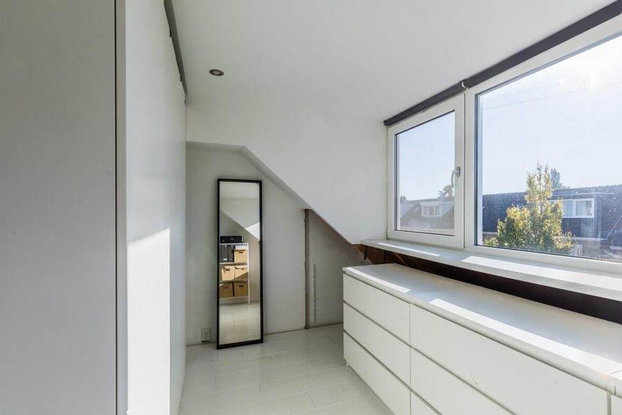Via de open trap bereik je deze verdieping. Deze verdieping is eveneens keurig afgewerkt en aan de voorzijde en achterzijde voorzien van een dakkapel. Hier zijn nog twee slaapkamers te vinden en afgesloten bergruimte. In deze bergruimte zit de aansluiting voor witgoed bevestigd.