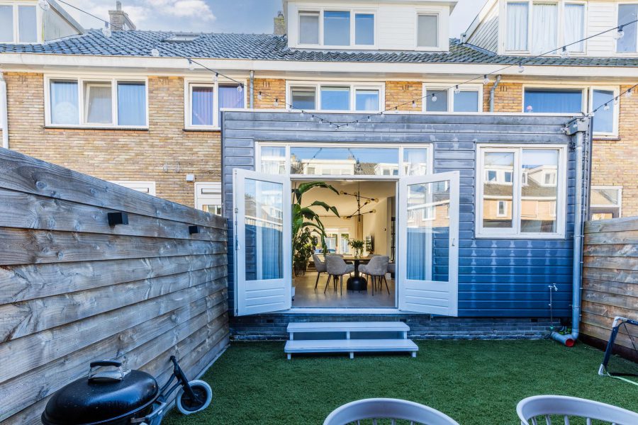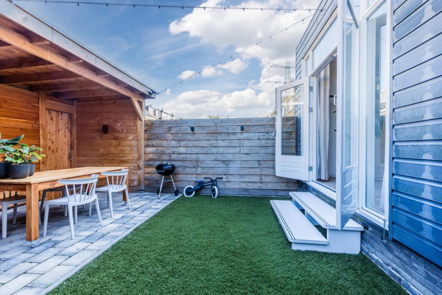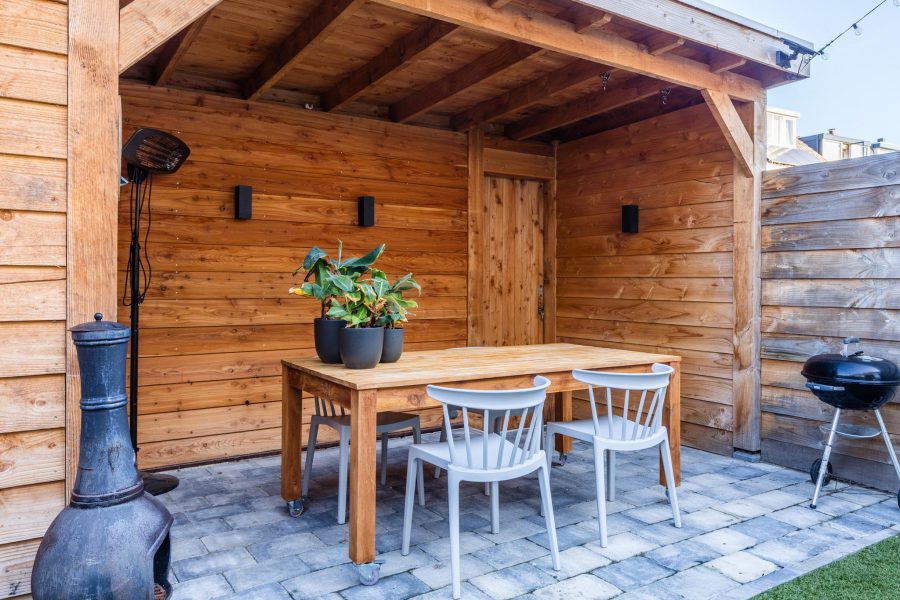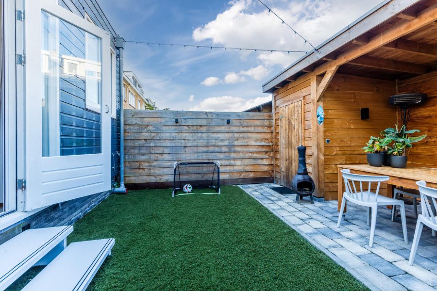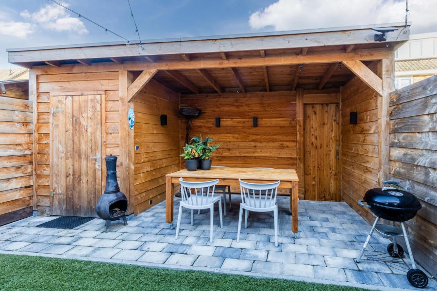• Achtertuin met houten berging en overkapping (2022)