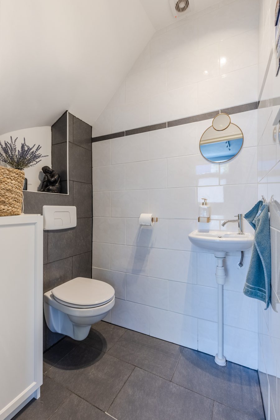 • Grote en mooie badkamer met toilet, wastafel en douchecabine