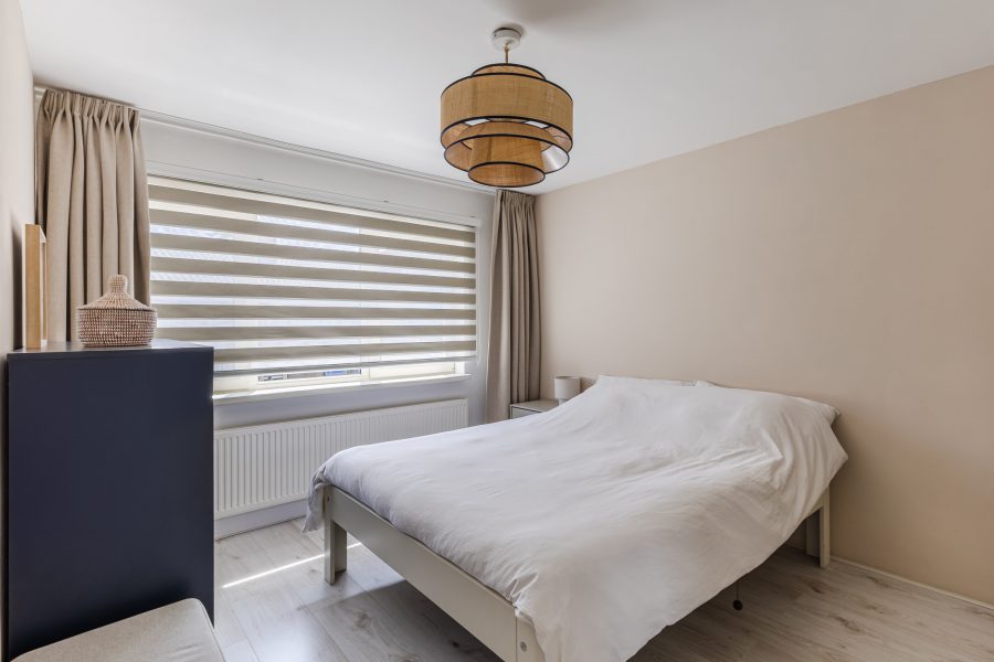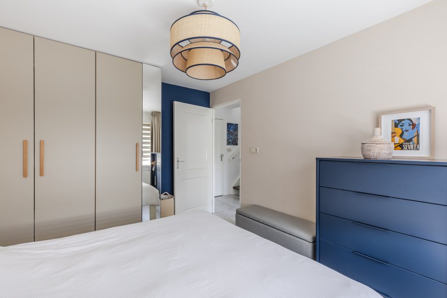A fixed staircase leads to the spacious attic. Thanks to the available space, this floor offers plenty of possibilities. You could create an extra bedroom here or use the space as a work or lounge area. The attic is beautifully finished with light-colored flooring and sleek walls. Thanks to the dormer window at the back, this floor is wonderfully spacious and light.