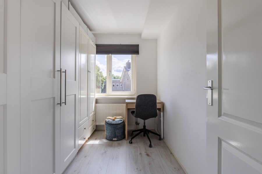 Via de vaste trap bereik je de ruime leefzolder. Dankzij de beschikbare ruimte biedt deze verdieping volop mogelijkheden. Zo kun je hier een extra slaapkamer creëren, maar kun je de ruimte ook gebruiken als werk- of loungeplek. De zolderverdieping is fraai afgewerkt met een lichte vloer en strakke wanden. Dankzij de dakkapel aan de achterzijde is deze verdieping heerlijk ruim en licht.