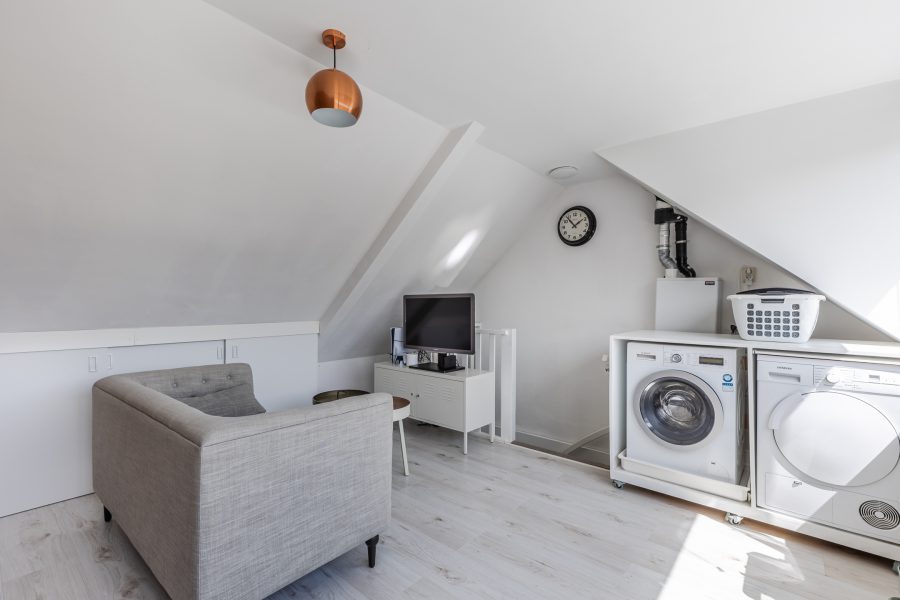Op zolder zijn de wasmachine- en drogeraansluitingen te vinden. Verder biedt deze verdieping veel opslagruimte.