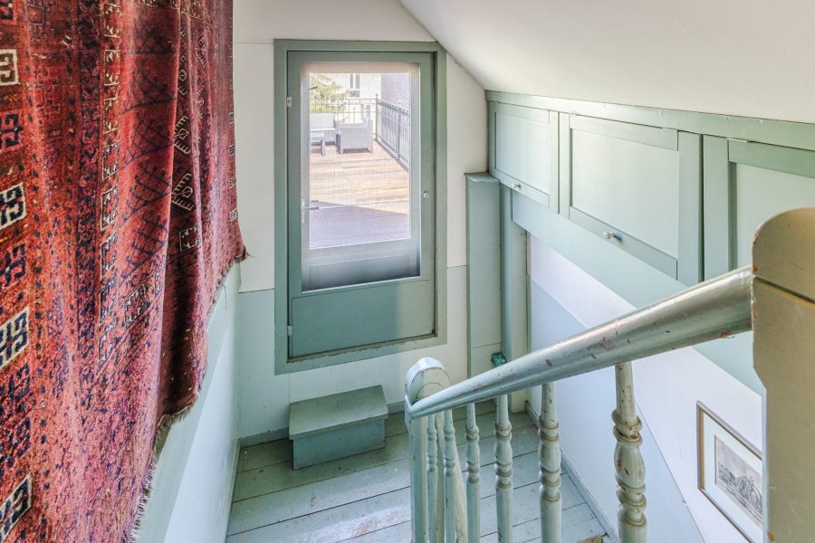 Hier zijn drie zeer ruime slaapkamers te vinden met grote raampartijen en vaste kasten. Via een ‘doorloopkast’ zijn deze met elkaar verbonden. Deze verdieping wordt ook wel de kinderverdieping genoemd. Op de overloop bevindt zich een toilet en bergruimte. Ook tref je hier de cv-installatie aan. Ook op deze verdieping tref je de authentieke sfeer van deze woning aan. Er liggen houten vloerdelen. Via de overloop vind je een toegangsdeur tot een ruim dakterras waar je een fijne loungeplek kunt realiseren.