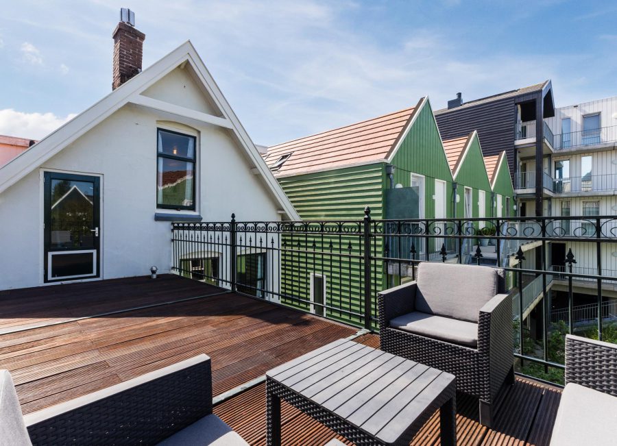 Here you will find three very spacious bedrooms with large windows and fitted wardrobes. On the landing is a toilet and storage space. Here you will also find the central heating system. Also on this floor you will find the authentic atmosphere of this house. There are wooden floorboards. Through the landing, you will find an access door to a spacious roof terrace where you can create a nice lounge area.