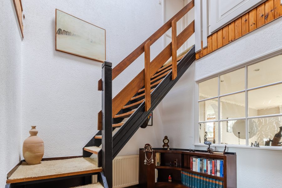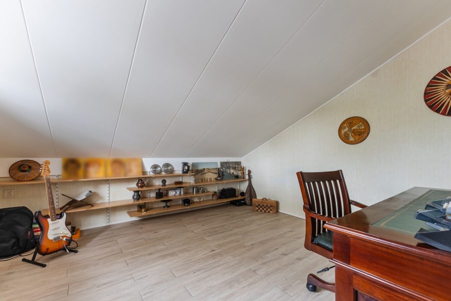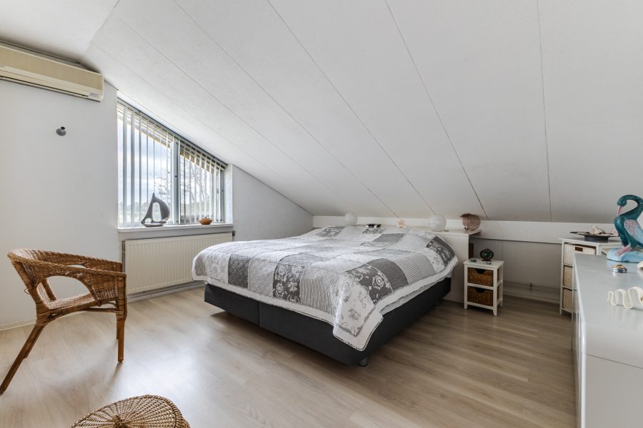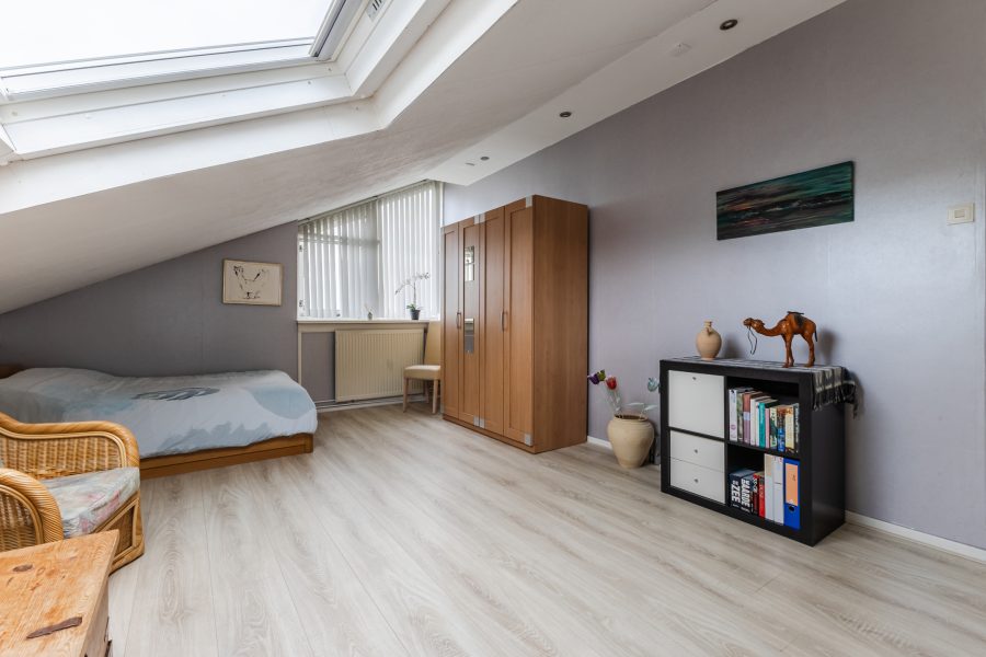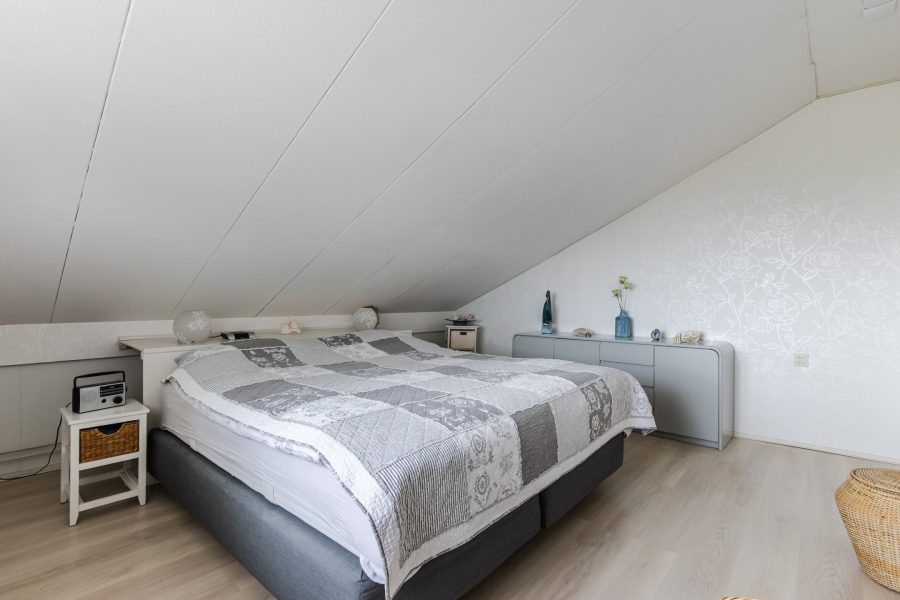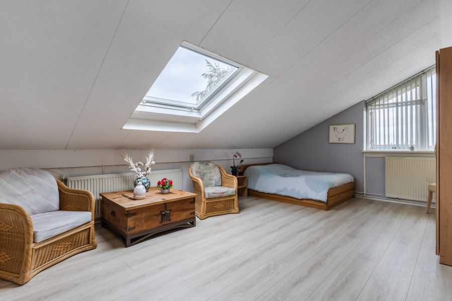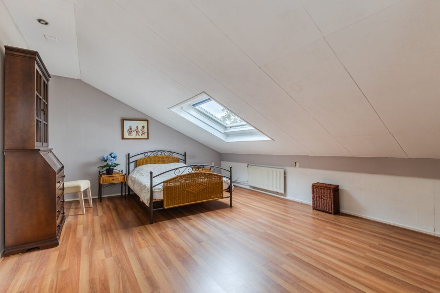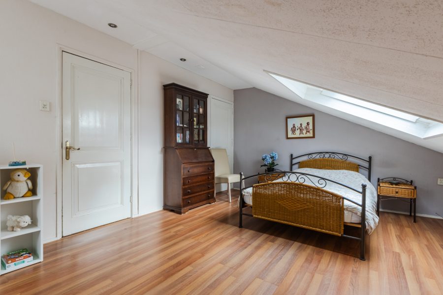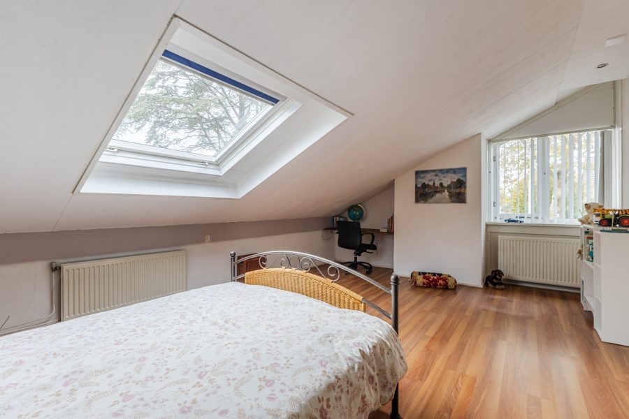 De trap in de hal leidt naar de ruime overloop met lichtkoepel. Vanaf hier heb je toegang tot vier slaapkamers, de badkamer en een grote berging. Van de vier slaapkamers liggen er twee aan de voorzijde en twee aan de achterzijde. Alle kamers zijn ruim van formaat, netjes afgewerkt en heerlijk licht. Eén van de kamers is voorzien van airconditioning en biedt toegang tot een ruime inloopkast.