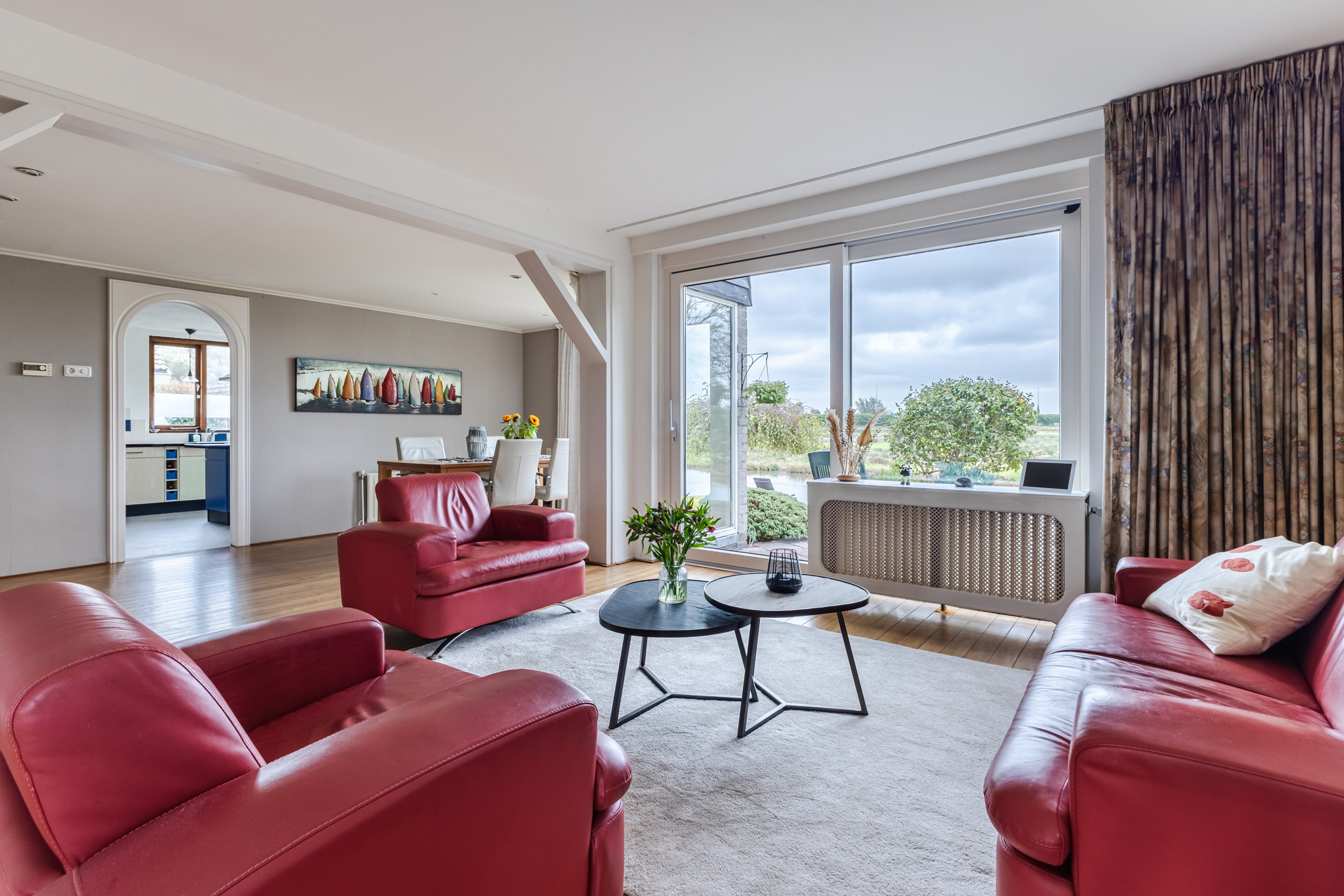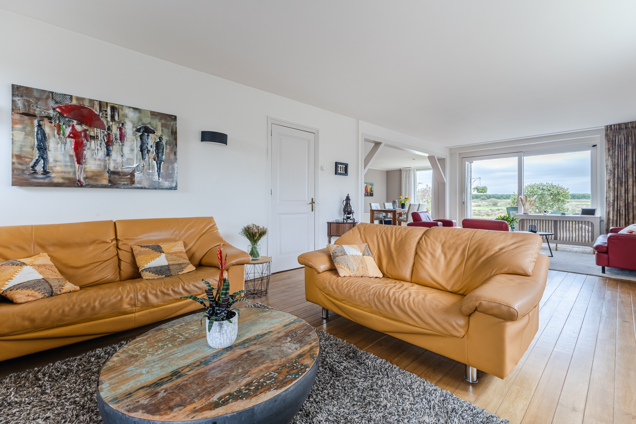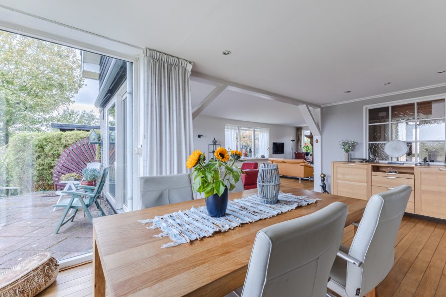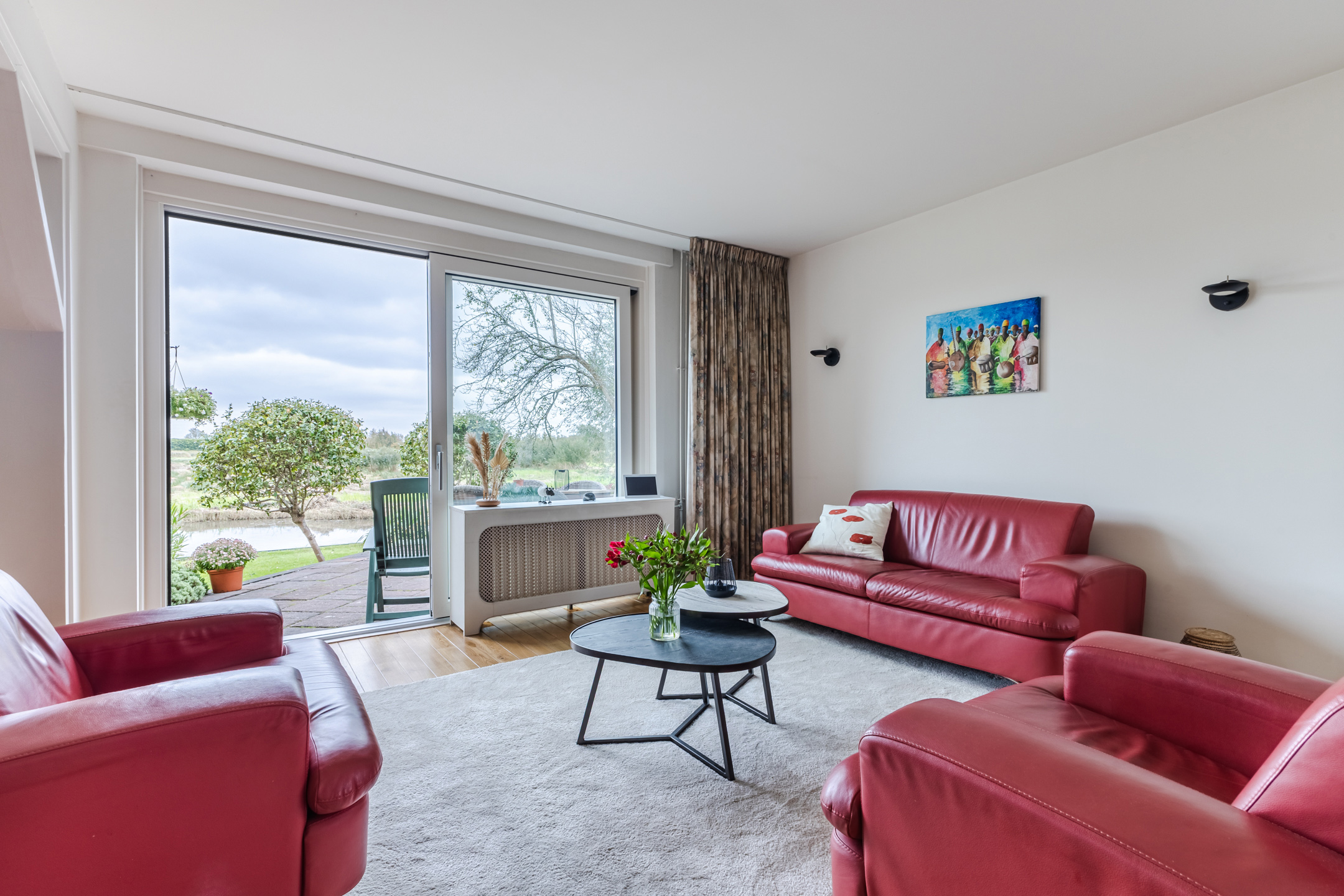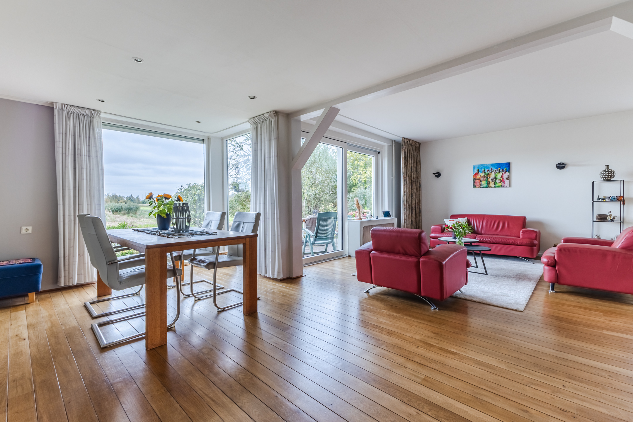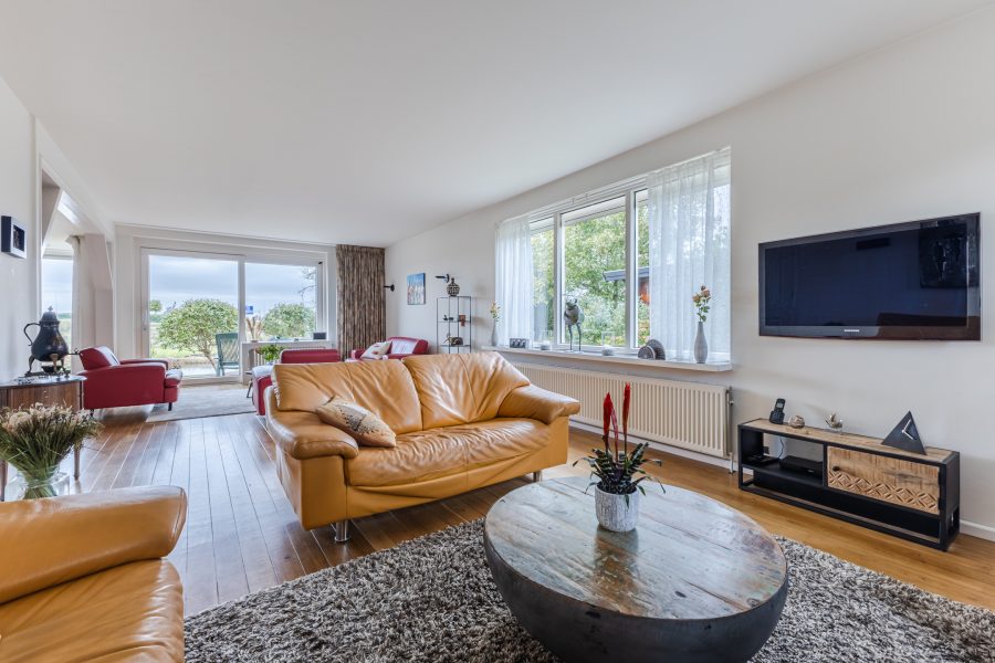 • Royale en lichte woonkamer met grote ramen en een schuifpui