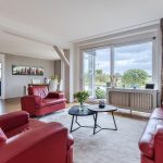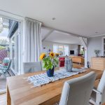 • Spacious and bright living room with large windows and sliding doors