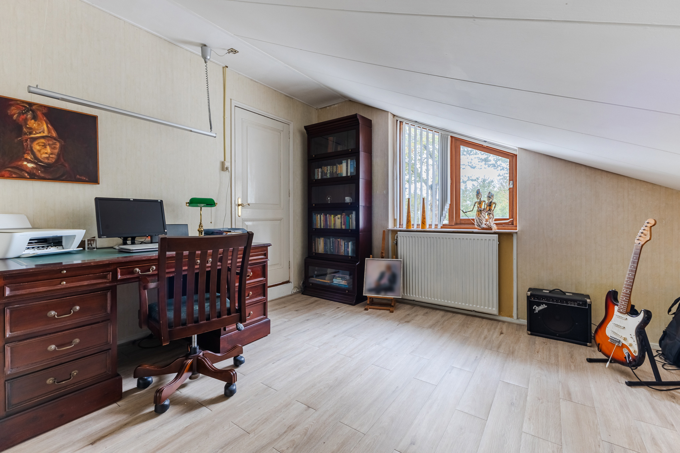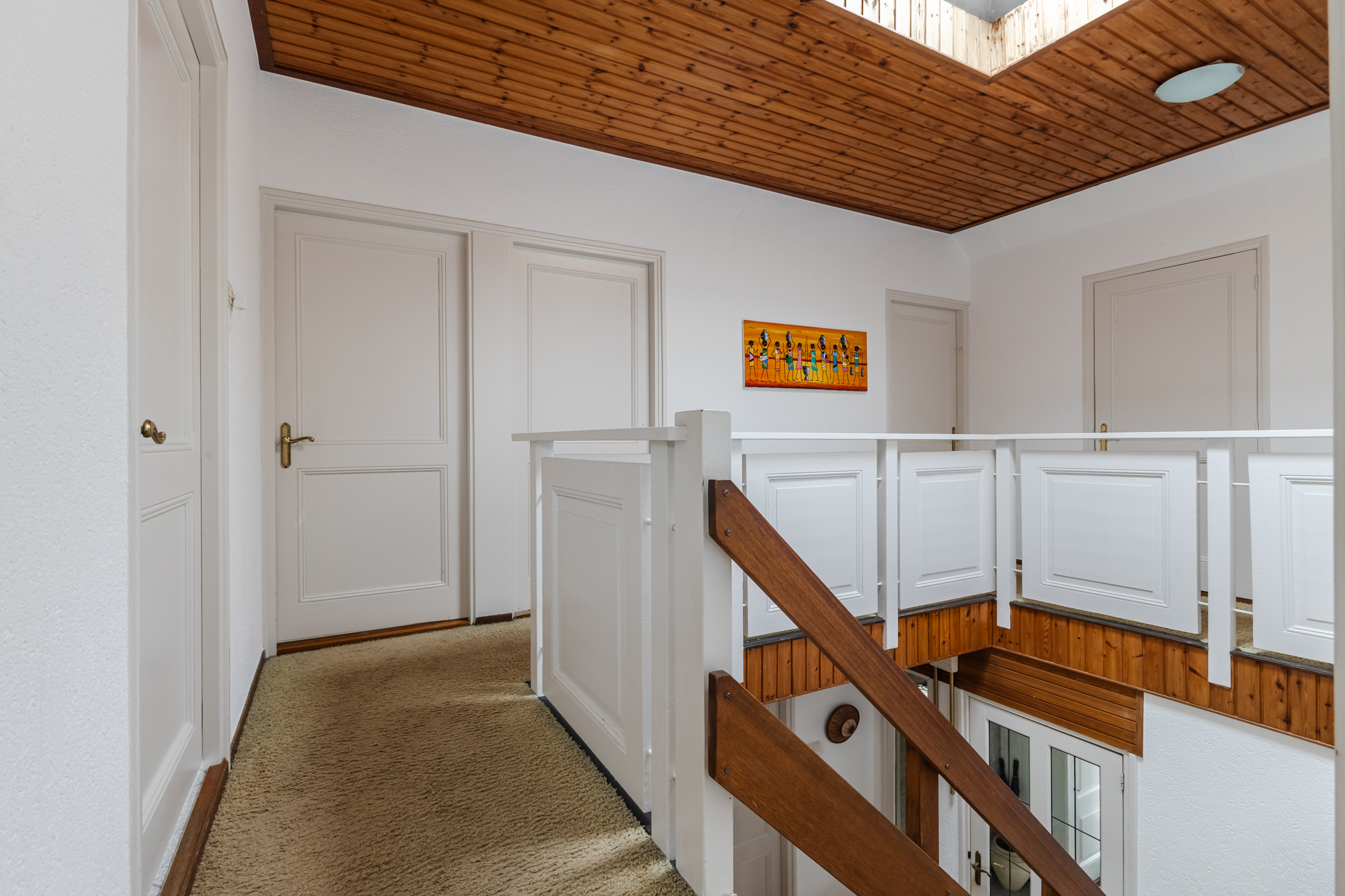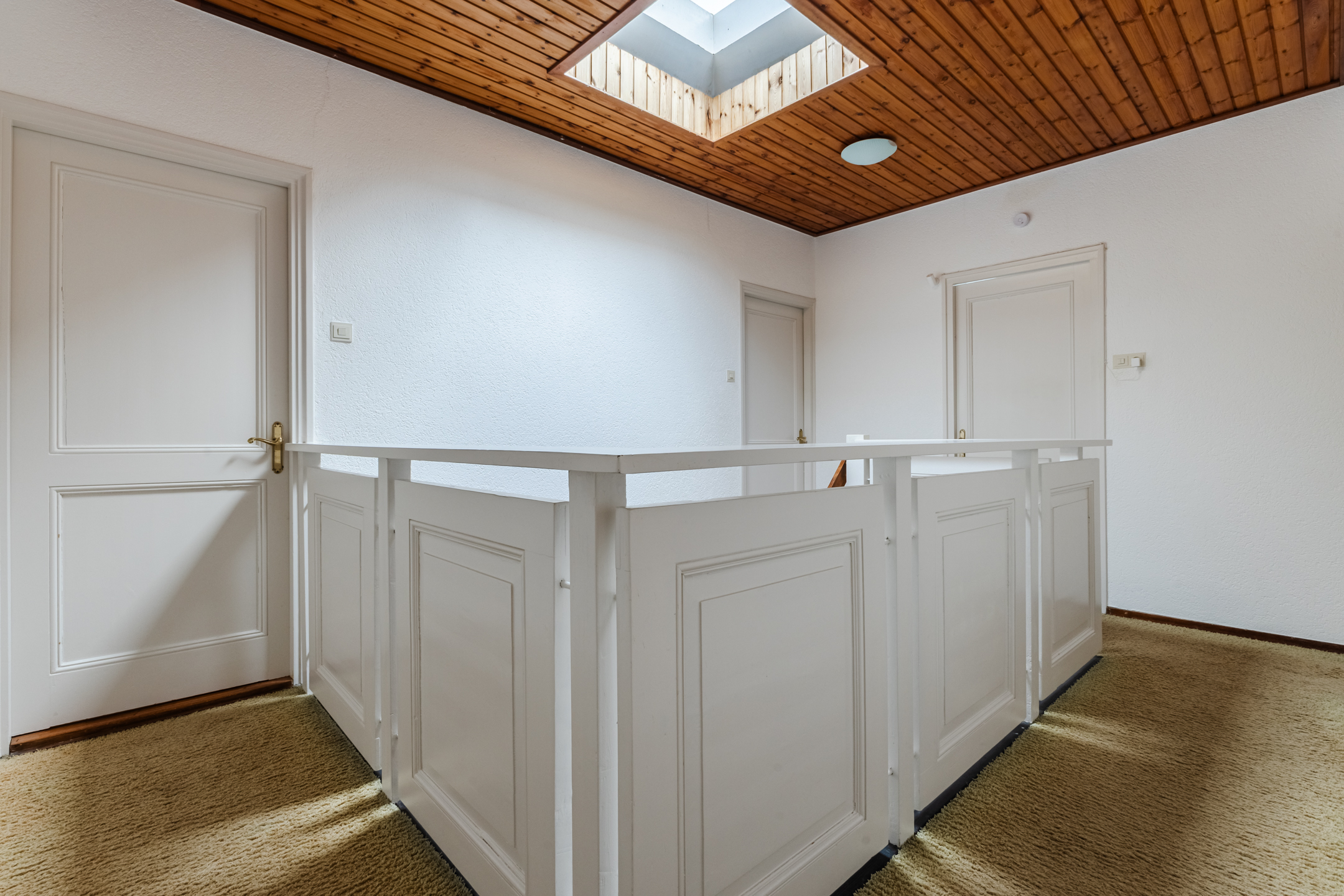 The staircase in the hall leads to the spacious landing with skylight. From here you have access to four bedrooms, the bathroom and a large storage room. Of the four bedrooms, two are at the front and two at the back. All rooms are spacious, nicely finished and wonderfully light. One of the rooms has air conditioning and access to a spacious walk-in closet.