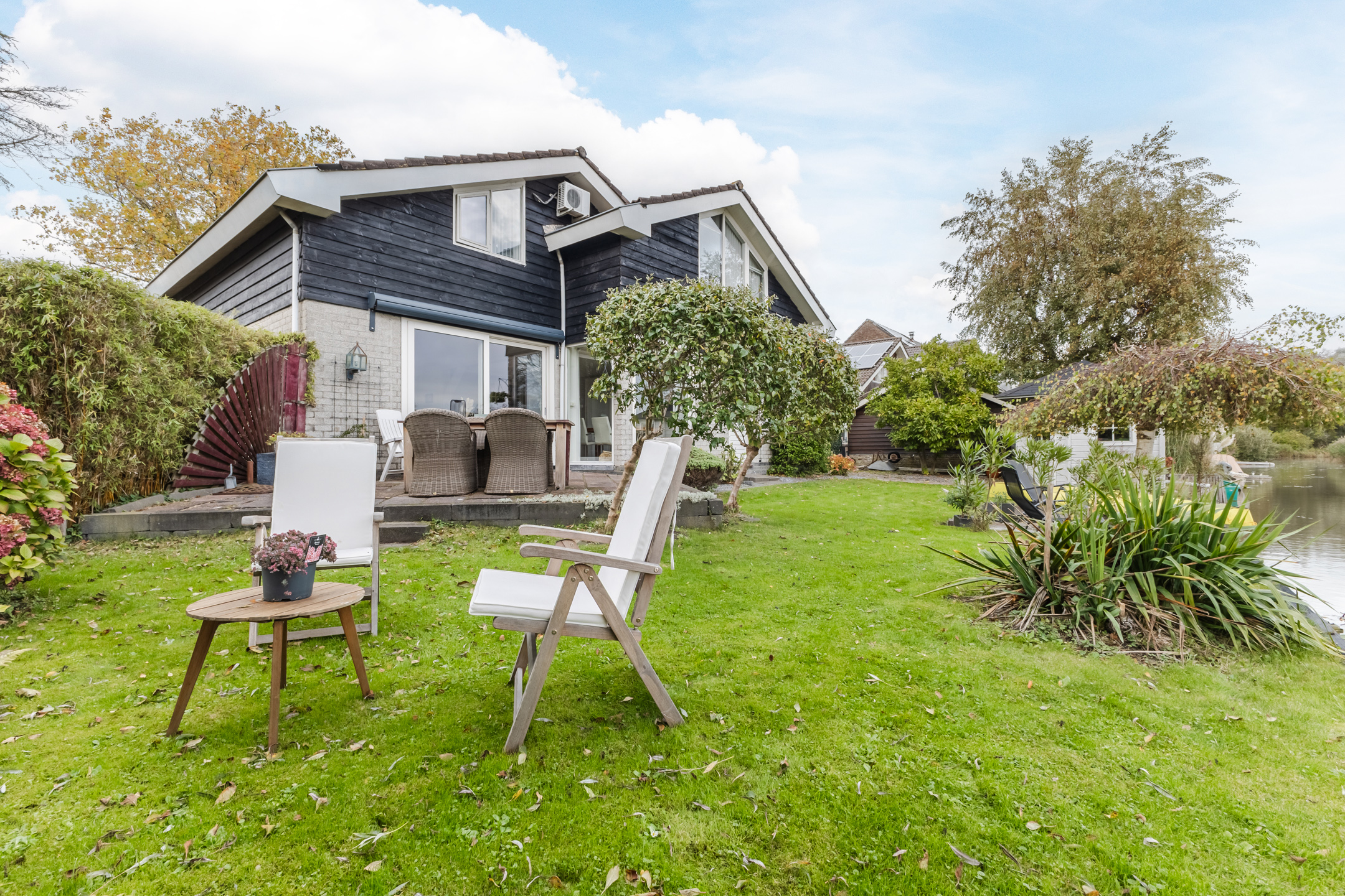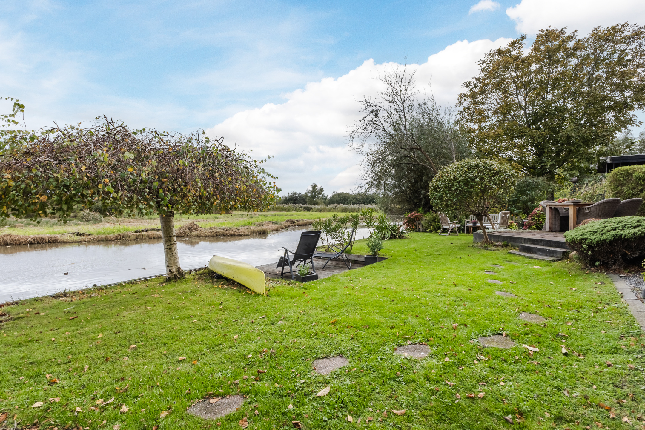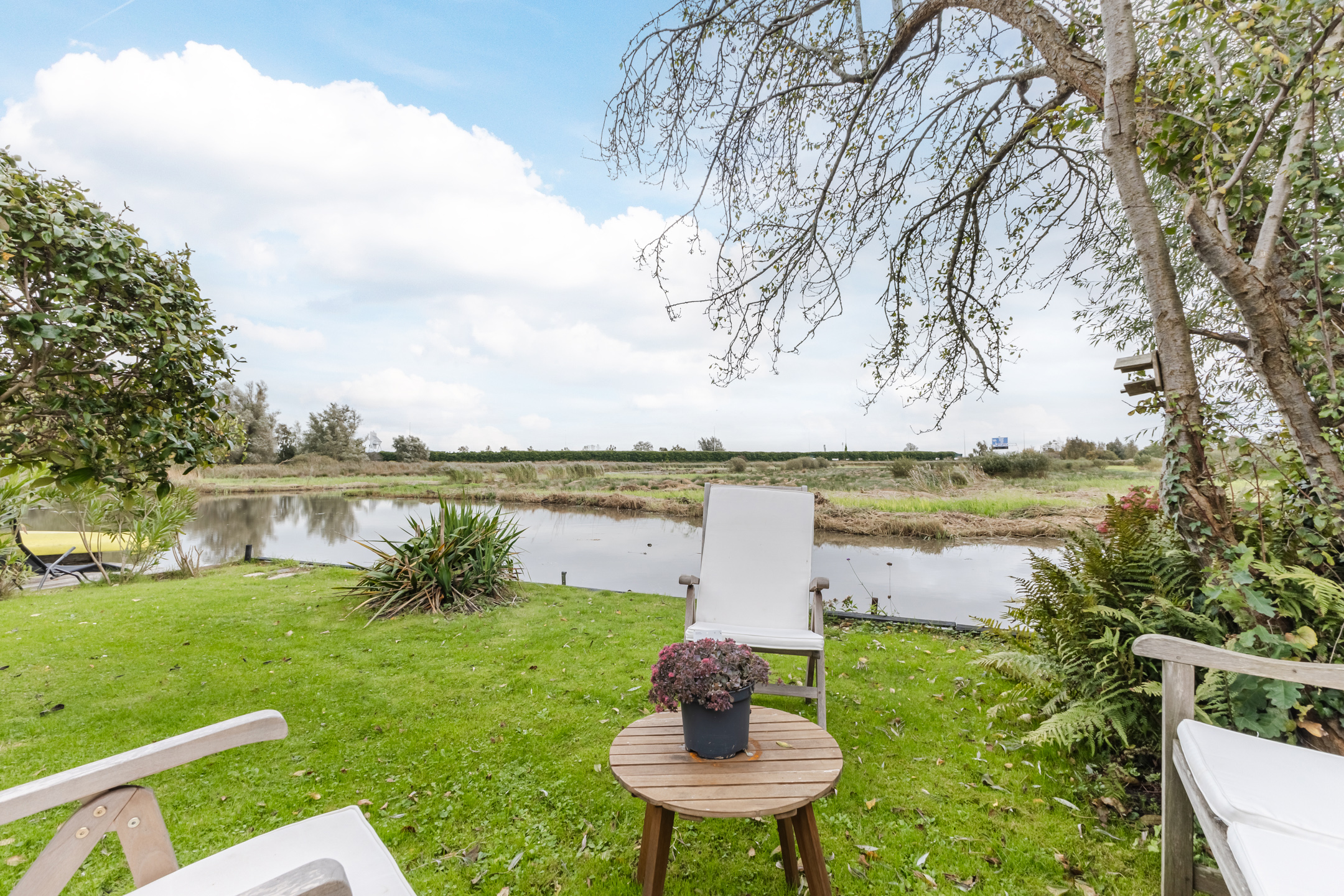 • Sfeervolle tuin aan open vaarwater