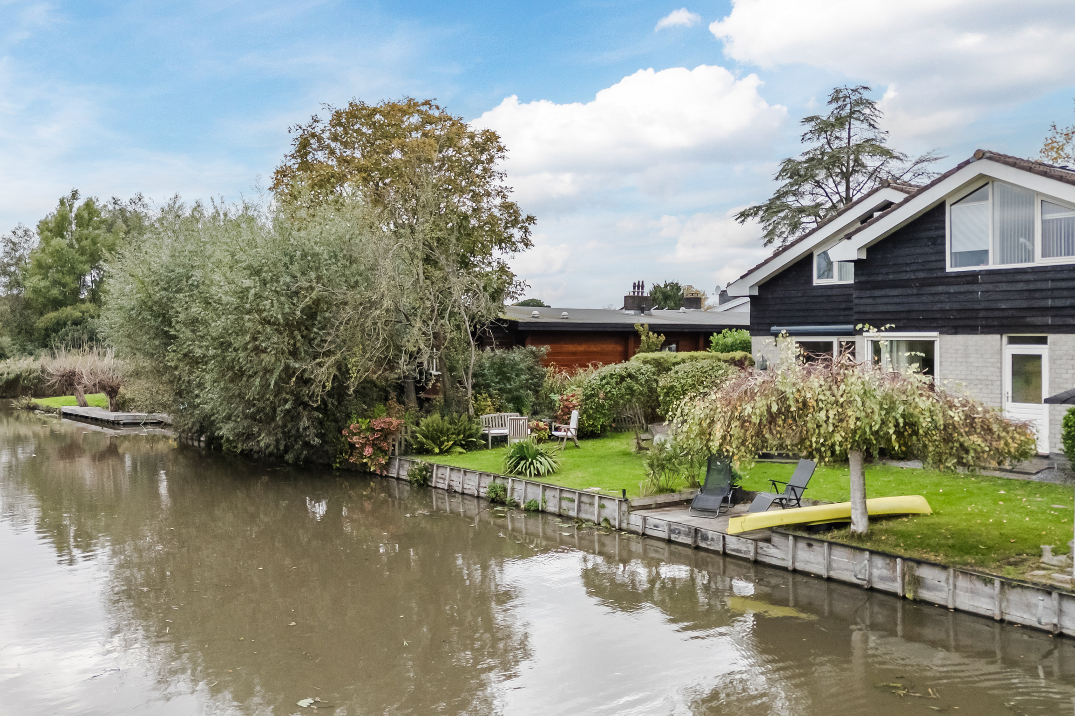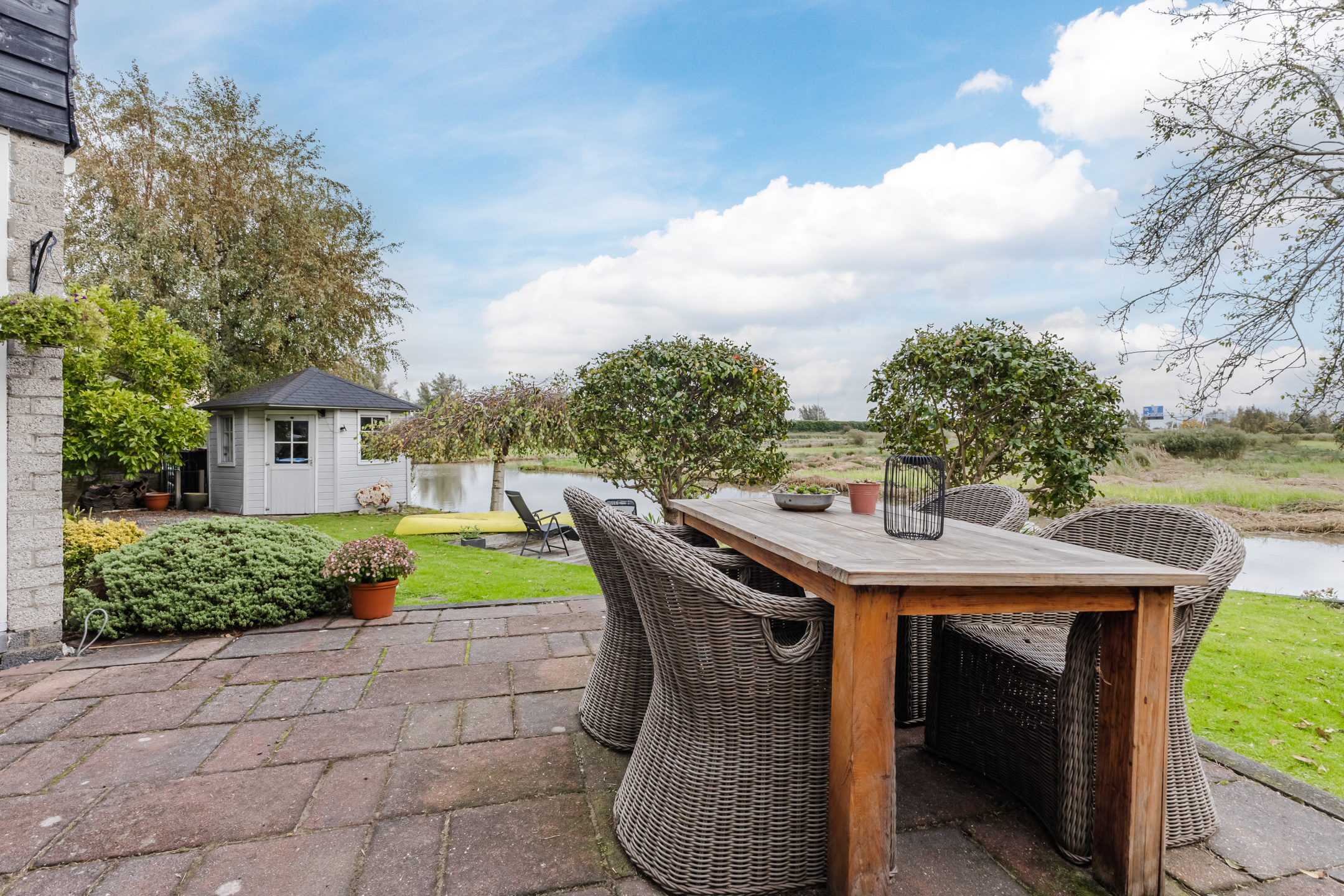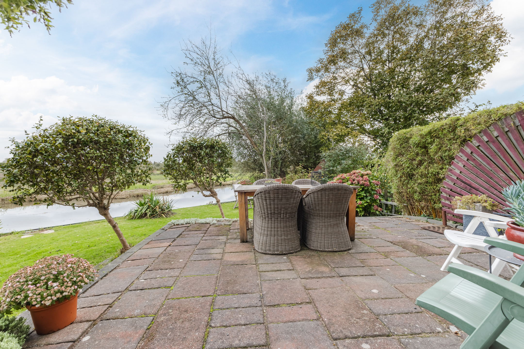 • Sfeervolle tuin aan open vaarwater