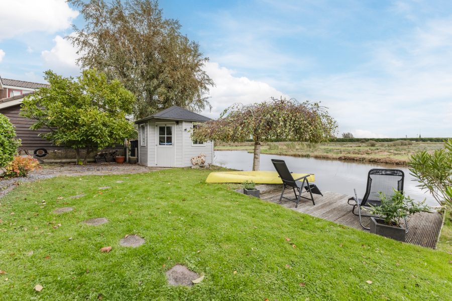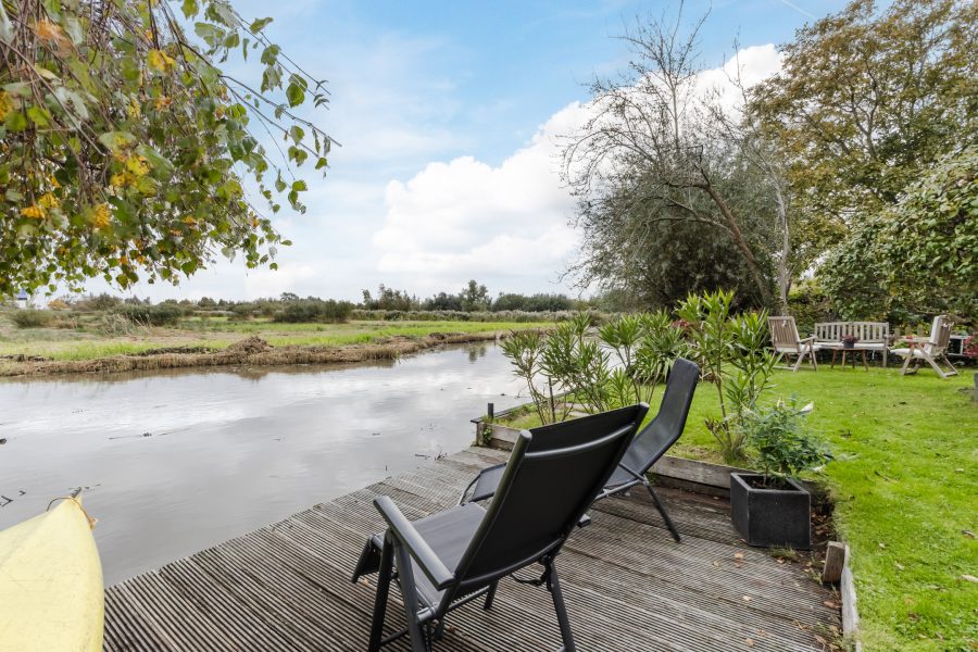 De tuin ligt helemaal rondom het huis en is een geweldige plek om te genieten van het buitenleven. Er is ruimte voor meerdere loungeplekken, om zo optimaal van het lekkere weer te genieten. Je kunt hier heerlijk loungen. De achtertuin ligt aan open vaarwater en biedt prachtig uitzicht over het water en de groene omgeving. Vanuit de tuin stap je zó je boot op voor een mooie vaartocht.