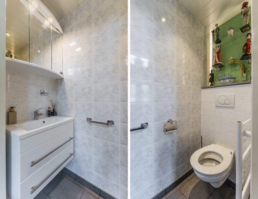 De gehele woning is perfect afgewerkt met behulp van verschillende sfeerbepalende materialen. De plafonds zijn strak afgewerkt en veelal voorzien van inbouwspots.
