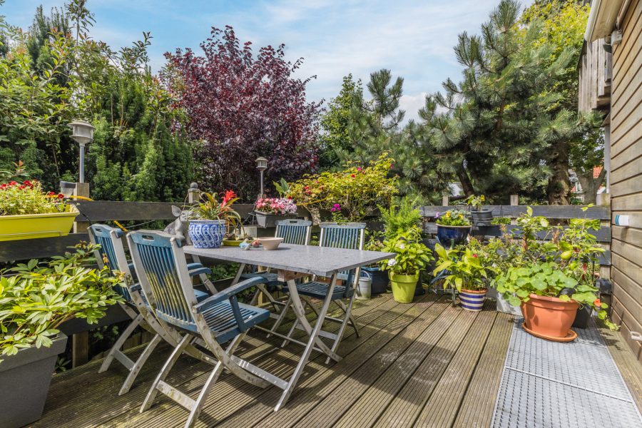 • Fraai aangelegde groene tuin met overdekt terras