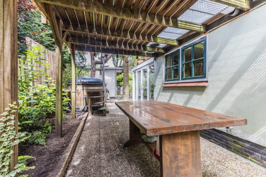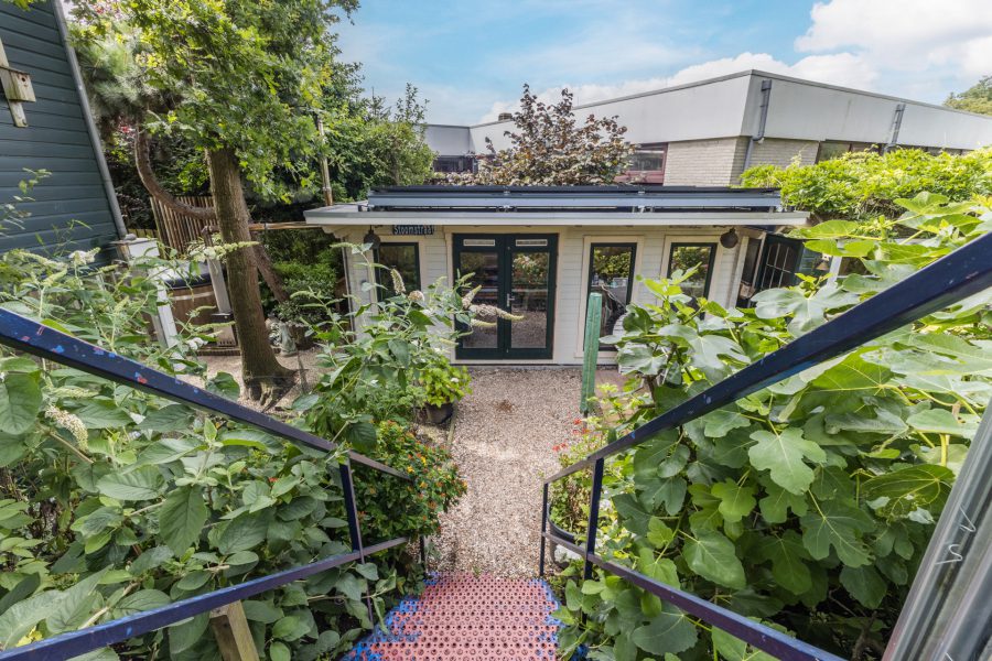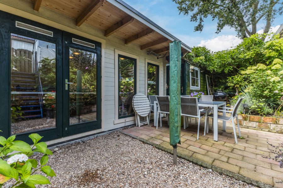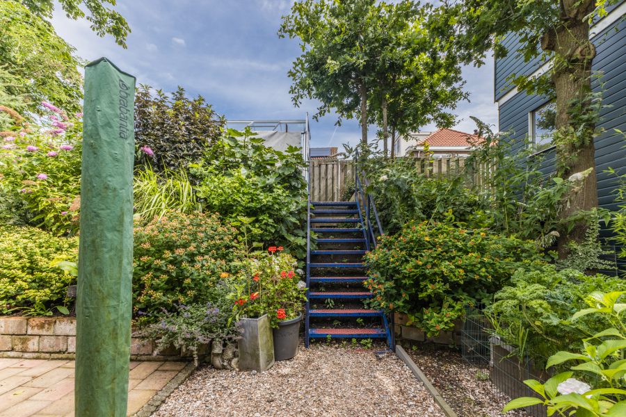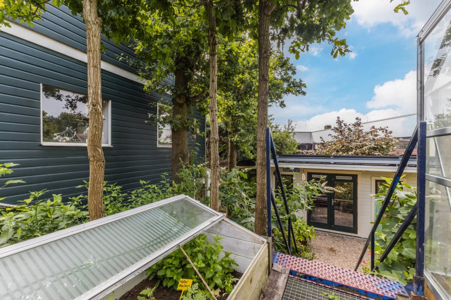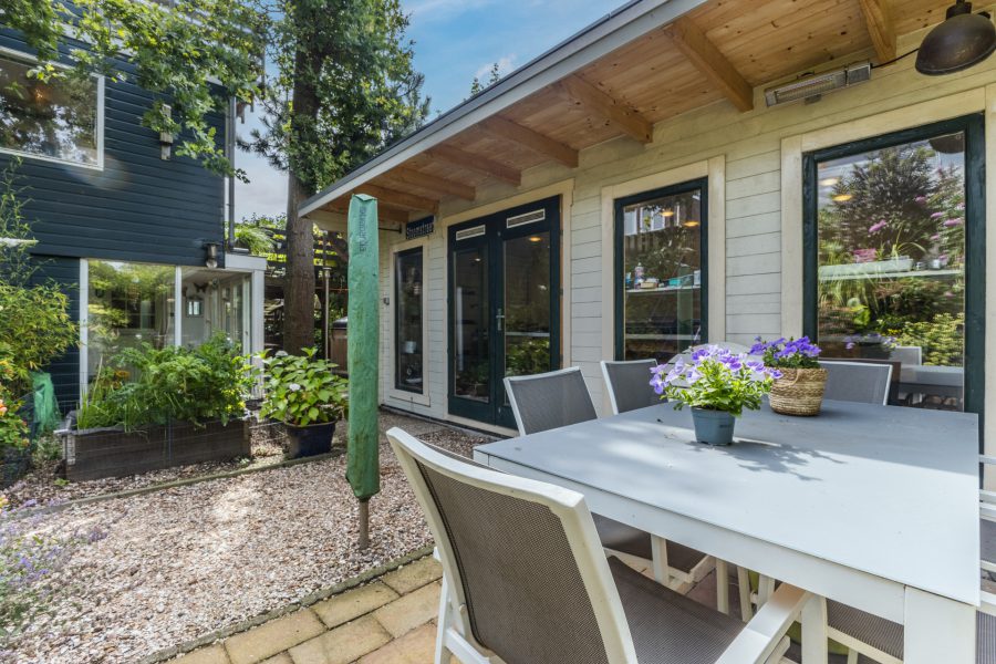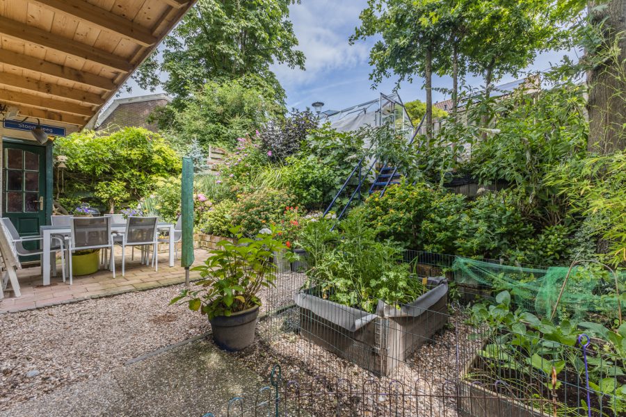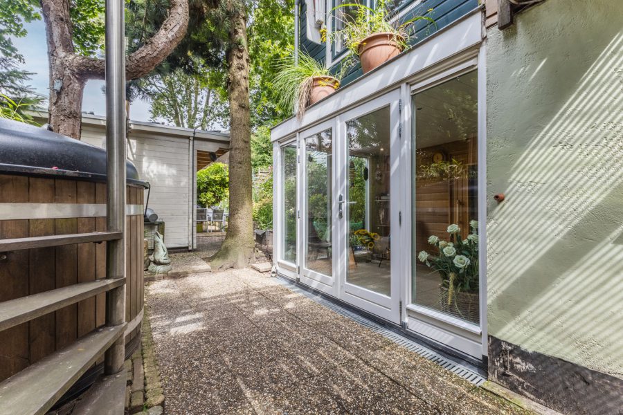De woning heeft een fantastische, volgroeide groene achtertuin met overkapt terras, een tuinhuis, een timmerwerkplaats, een hot tub en een hobby tuinkas. In de tuinhuis vind je de professionele sauna/turks stoombad. De planten kunnen bewaterd worden door middel van de wateropslag voor regen. De tuinhuis is geïsoleerd en wordt verwarmd door middel van infrarood panelen. De tuin biedt optimale privacy. Je hebt de mogelijkheid je eigen groente en kruiden te verbouwen.