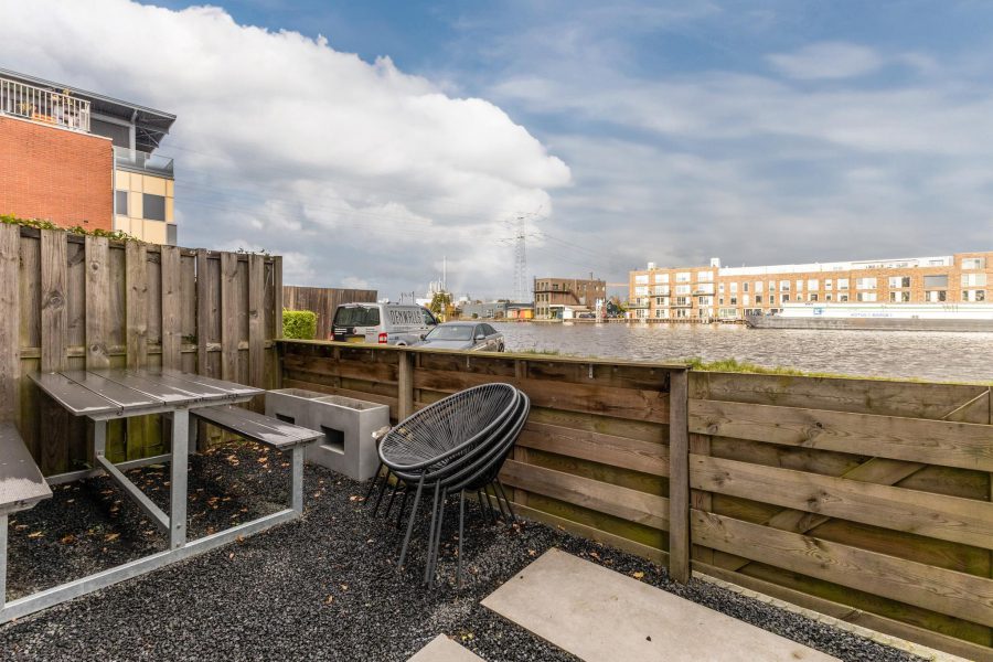 De woning heeft een tuin met vrij uitzicht over het water. Je kunt hier een fijne loungeplek realiseren en/of een buitentafel plaatsen om gezellig buiten te eten in de zomermaanden. De tuin is gelegen op het noordoosten.