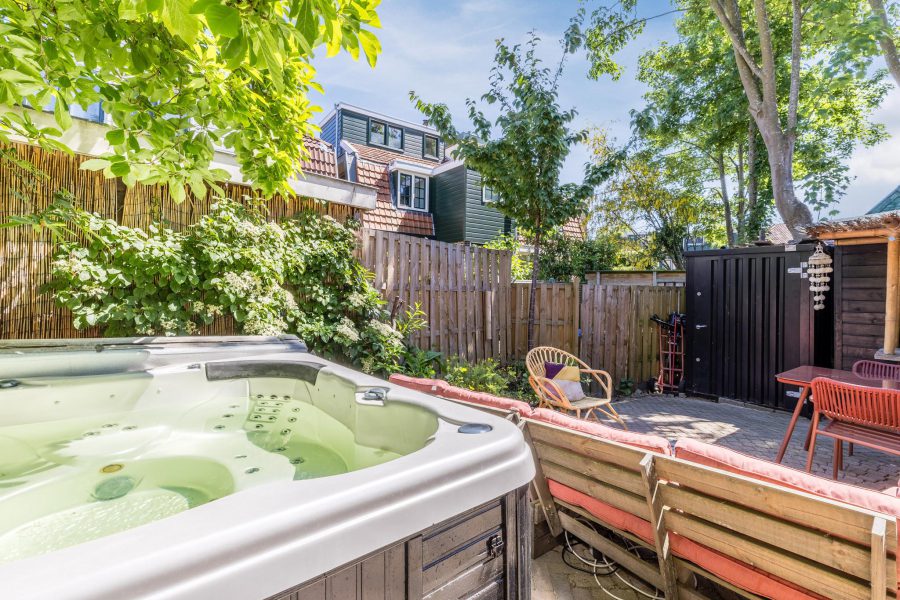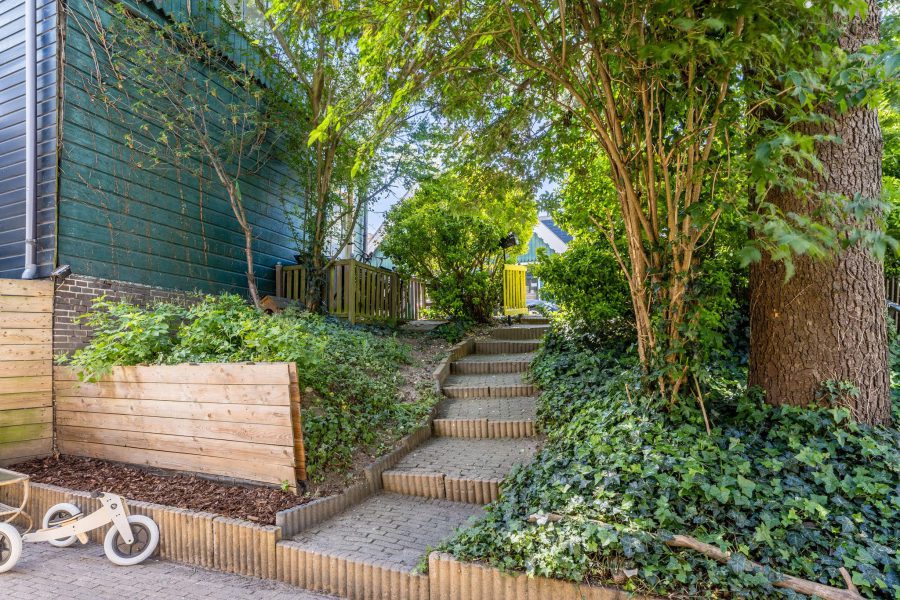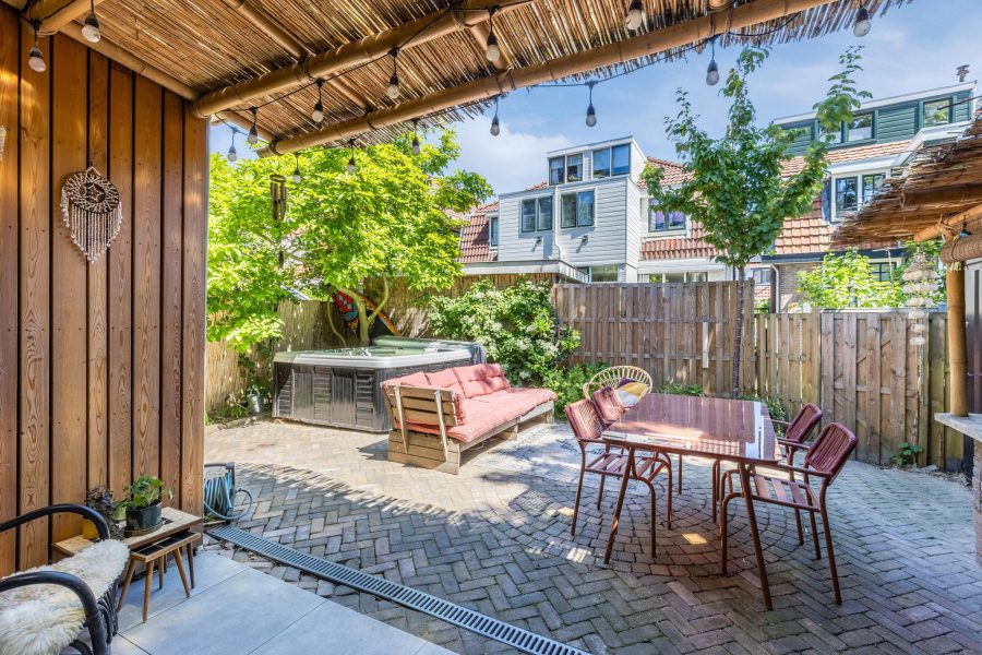 The property has a garden all around. The garden is partly green and partly paved. Attached to the house is a canopy. You will find a possibility for an outdoor kitchen and a whirlpool. You can always find a spot in the sun or shade in the front and/or back garden. Children can play safely here and there is a back entrance. In addition to 169 m² of leasehold land, approximately 29 m² of municipal land is rented for an amount of approximately €1,400 per year.