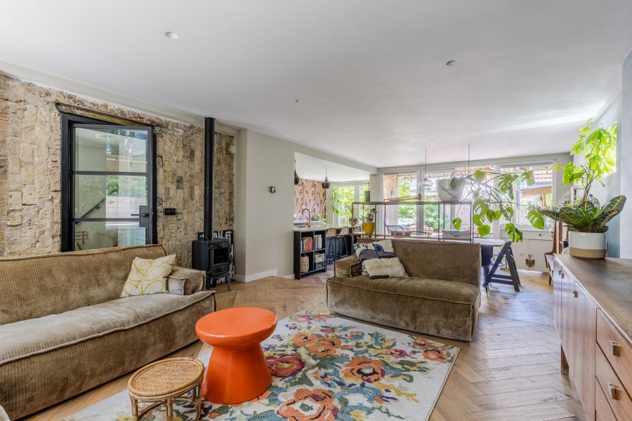 • Ruime, uitgebouwde sfeervolle living met houtkachel