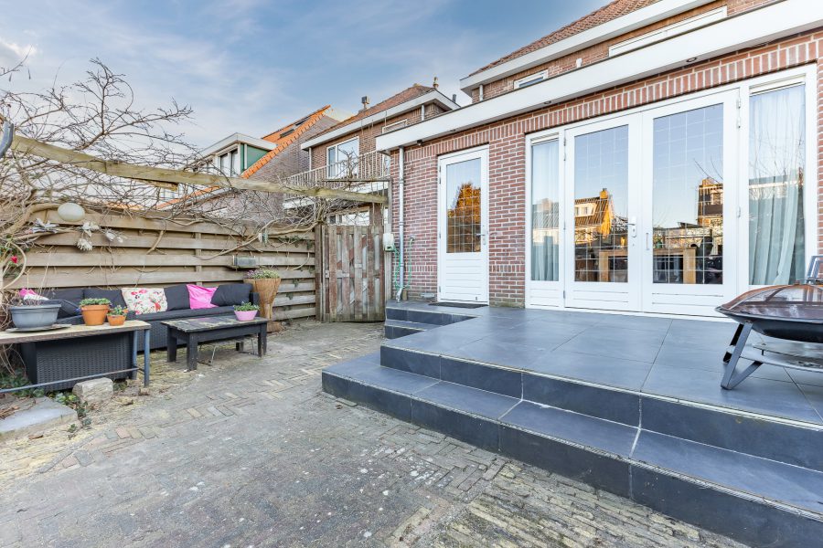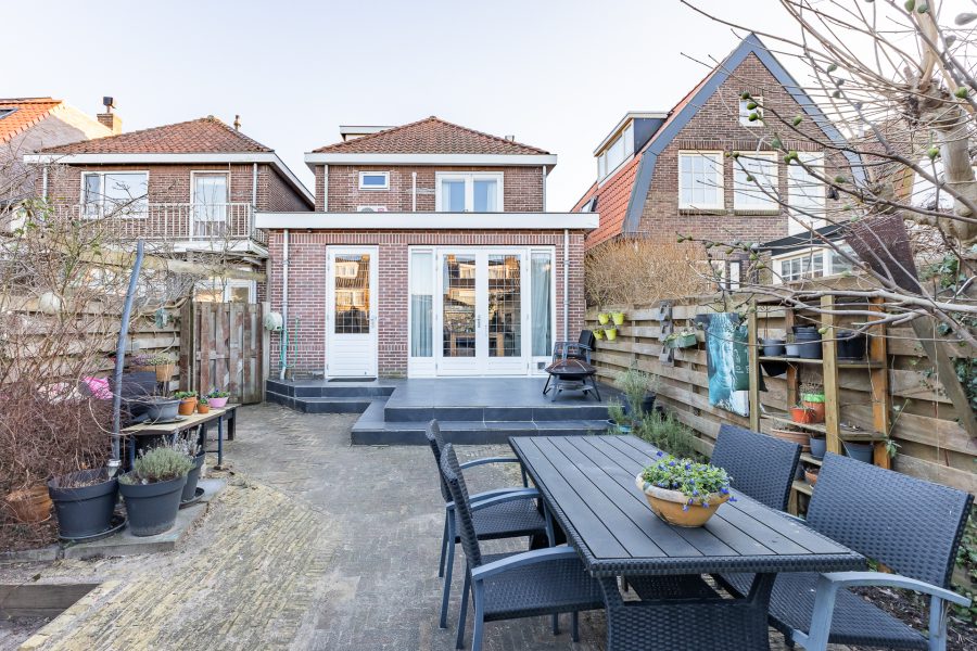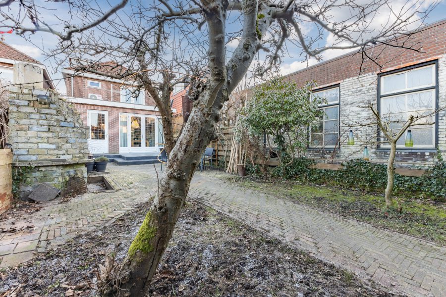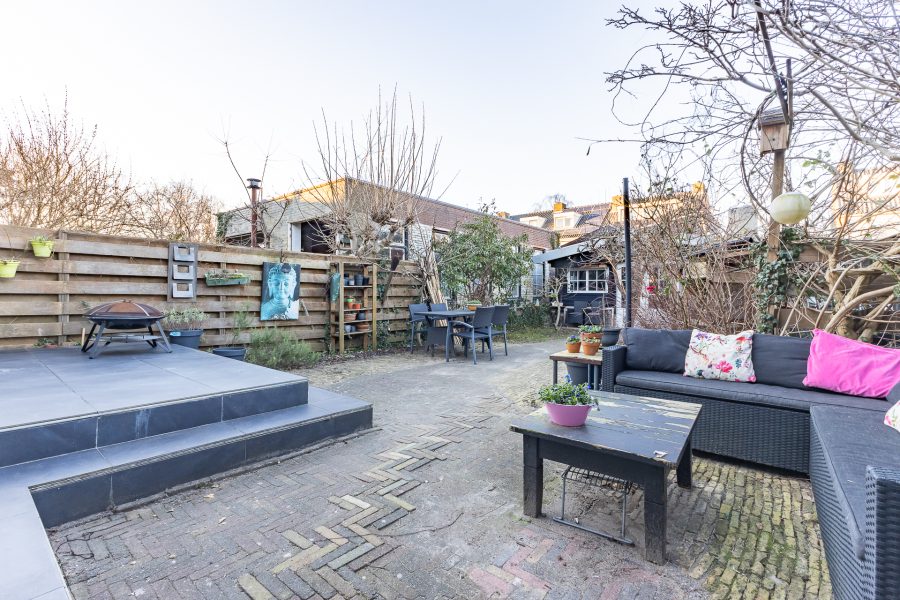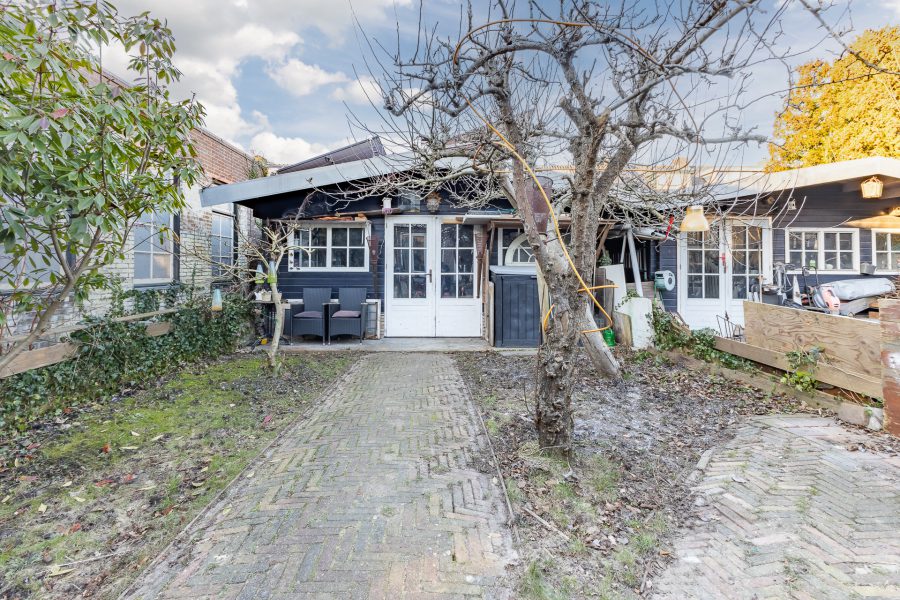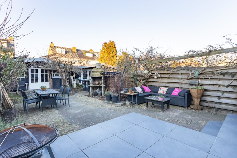 The property has a front garden and a rear garden of 19 meters deep. At the end of the garden is a spacious wooden shed with electricity of 26 m2. This space is suitable for many purposes, such as hobby room or workshop. Adjacent to the house is a raised tiled terrace and a lounge area. Furthermore, the garden offers numerous possibilities. If you like gardening, this is paradise and children can play here to their hearts content. There is a back entrance.