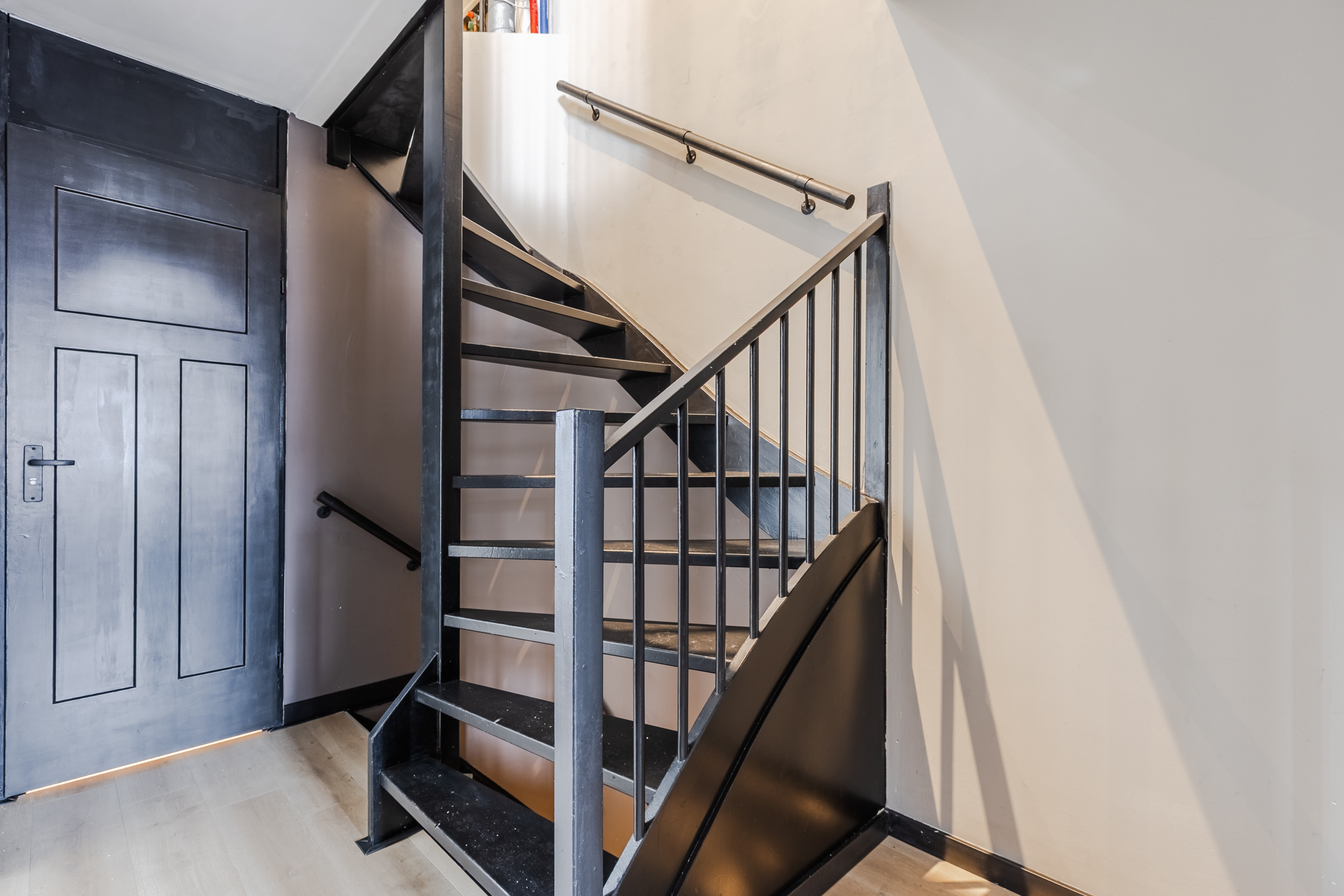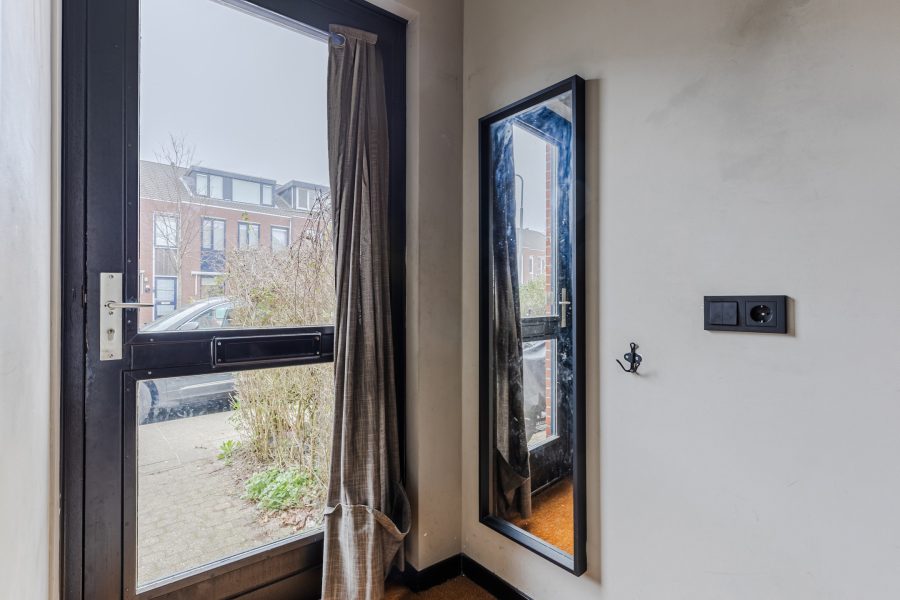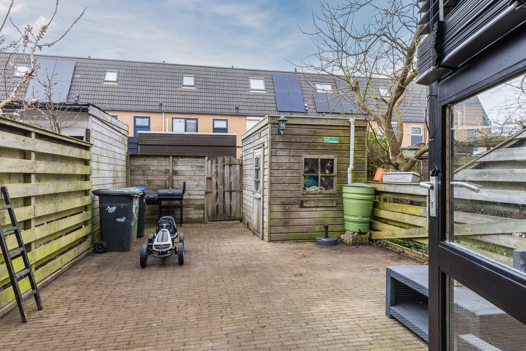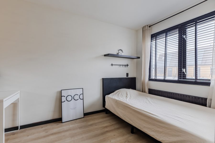 The house has a deep, sunny backyard. The garden is paved and offers enough space for a cozy lounge area. Thanks to the wooden fences around the garden, you can enjoy plenty of privacy. Here you can enjoy the sunshine in peace! At the back of the garden is a wooden shed with enough space for garden equipment and bicycles. There is also a back entrance.