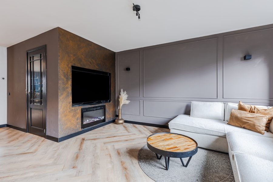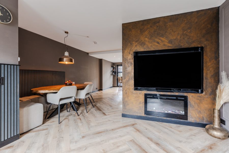 Via de betegelde voortuin bereik je de voordeur van deze mooie tussenwoning. Achter de voordeur bevindt zich de entreehal met meterkast en toegang tot de woonkamer. De woonkamer is uitgebouwd aan de achterzijde en is daardoor heerlijk ruim (woonkamer is volledig gestuukt in december 2021). Deze ruimte is afgewerkt met een fraaie visgraatvloer (december 2021) voorzien van vloerverwarming (december 2021 geplaatst). Dankzij de grote ramen en de openslaande tuindeuren valt er veel natuurlijk licht binnen. De aanbouw is voorzien van een verlaagd plafond met inbouwspots (plafondverlaging met spots geplaatst december 2021).