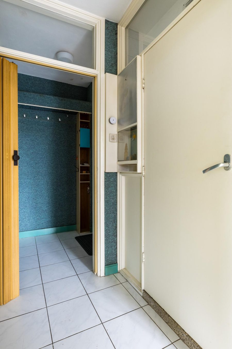 Gesloten entree met bel en intercom. Gemeenschappelijke hal met trappenhuis.