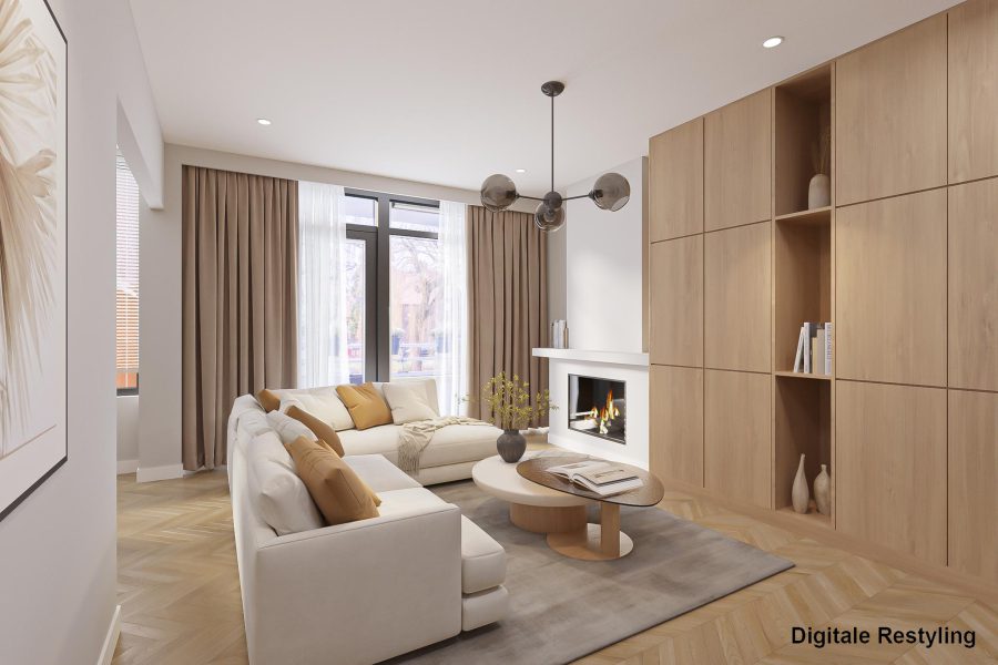 • Lichte woonkamer met schouw en gashaard