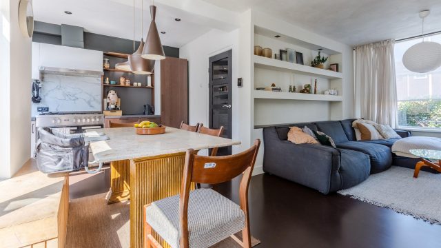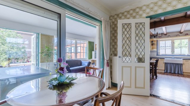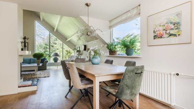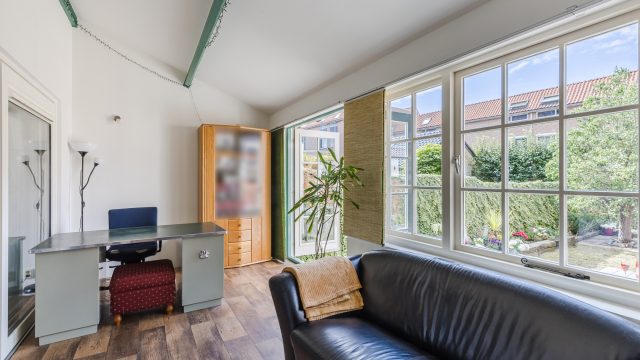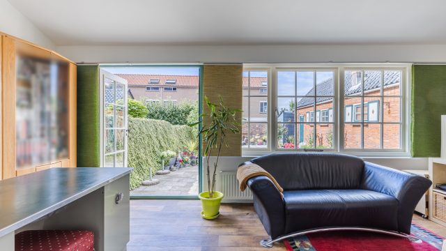 Wat een bijzonder huis is dit! Dit is geen doorsnee woning, maar een huis met een unieke vorm en een speelse indeling. Binnen vind je een royale woonkamer met schuifpuien, een fijne keuken, ruime kelder, twee grote slaapkamers, goed sanitair..